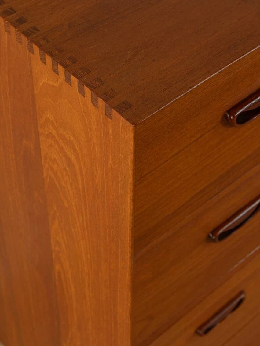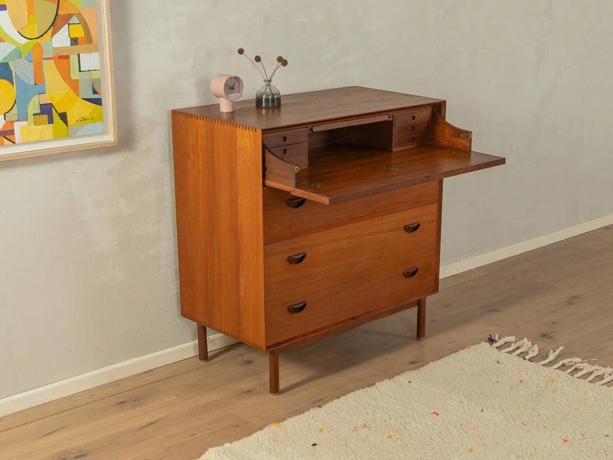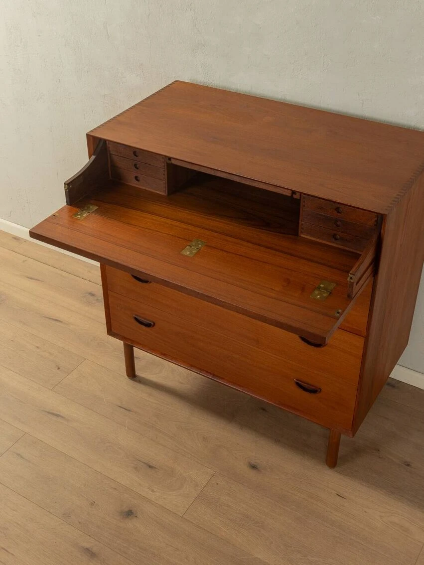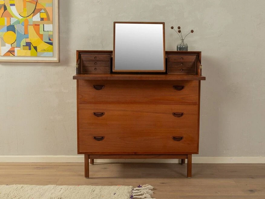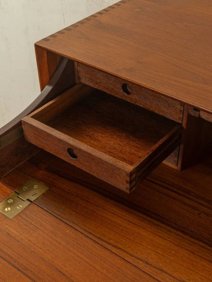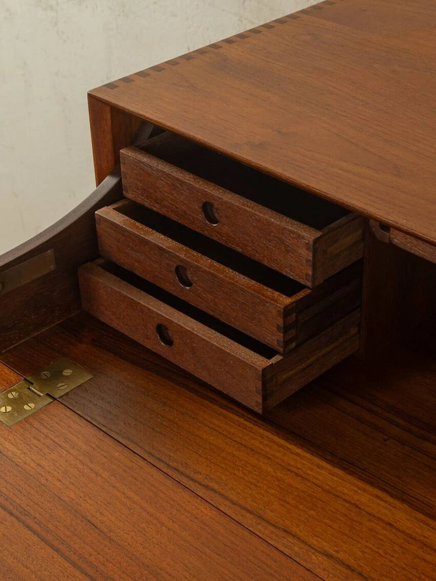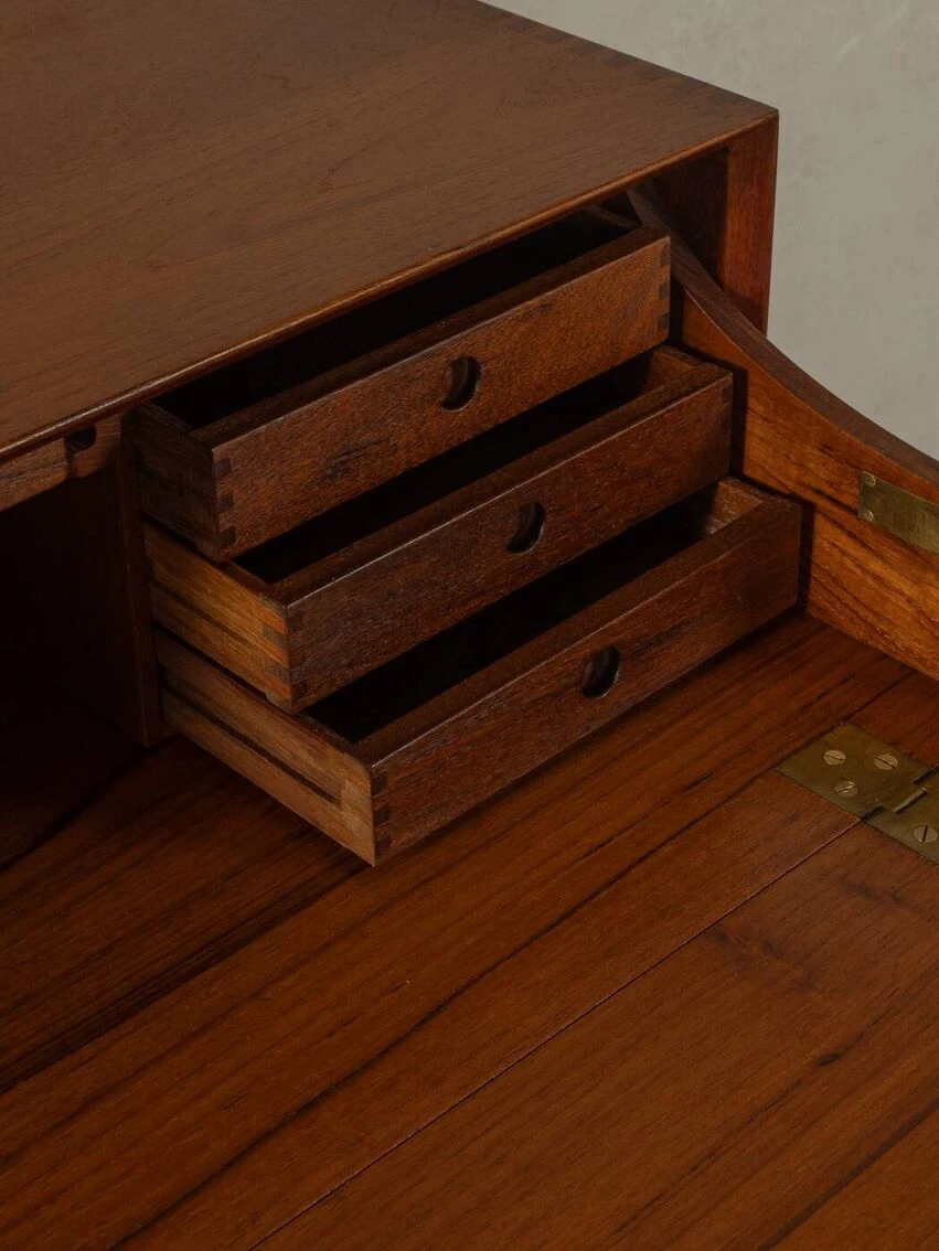 High-quality corpus made of solid teak with three drawers, six internal drawers, one pull-out work surface, a mirror and straight feet.