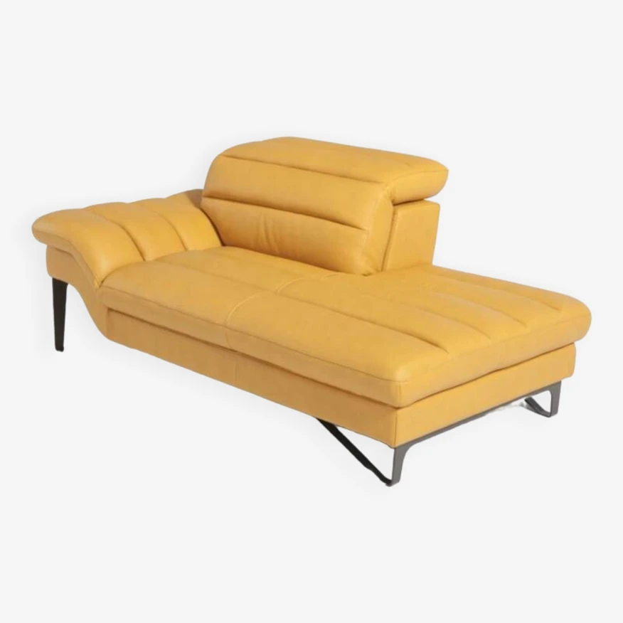 Magnificent leather chaise longue in excellent condition. 2 seater leather sofa. Yellow leather daybed. High-end daybed.
