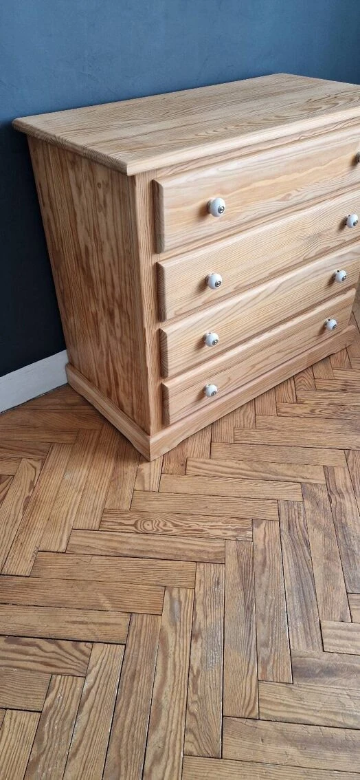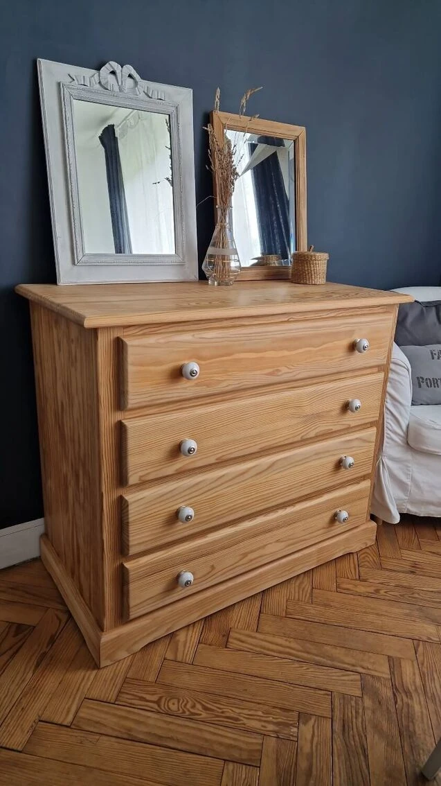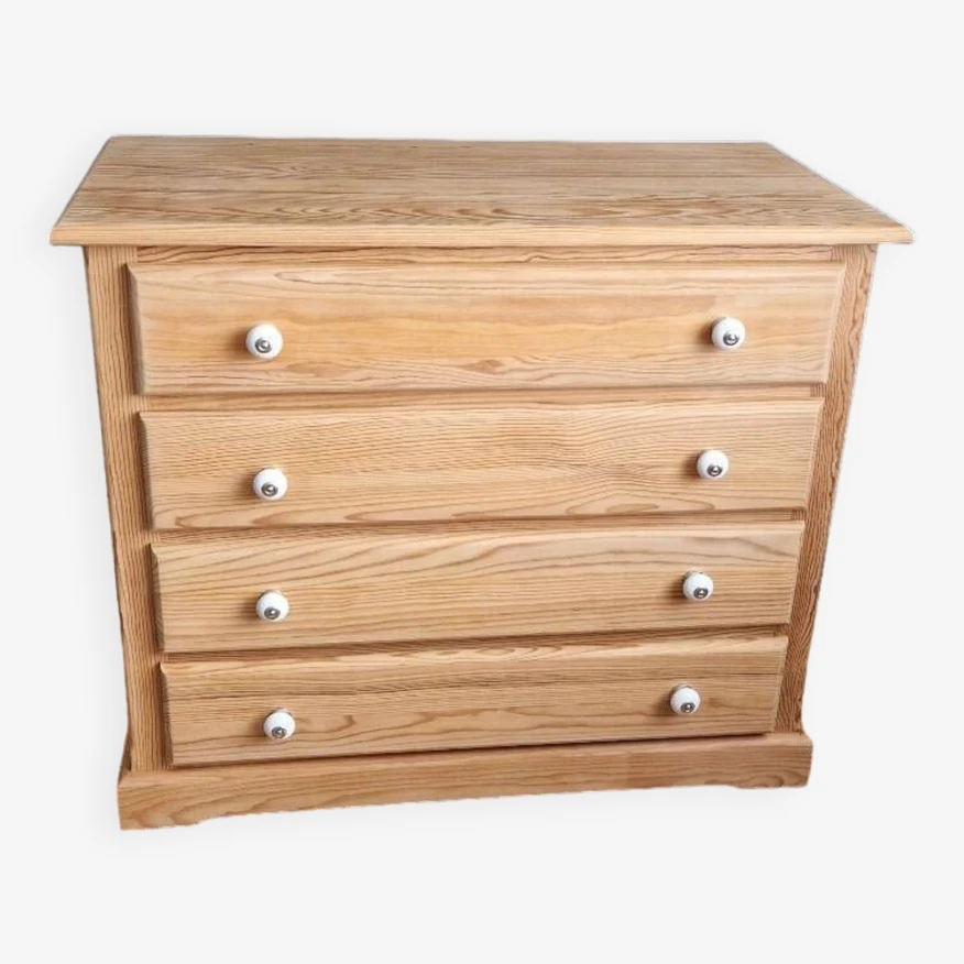 It has been revamped: sanding, xylophene treatment, care oil to protect it, new porcelain buttons and floral tapestry inside the drawers (which slide perfectly) depth 50 cm length 100cm height 84 cm.