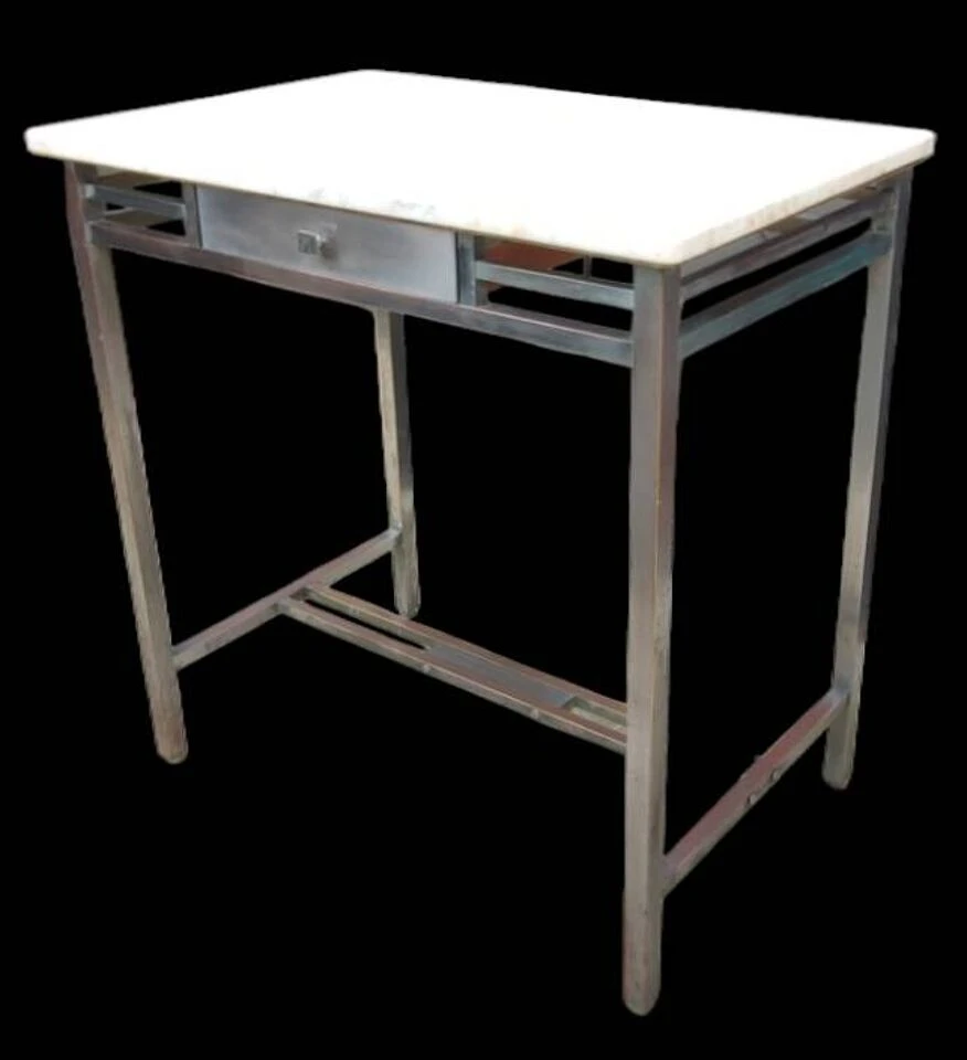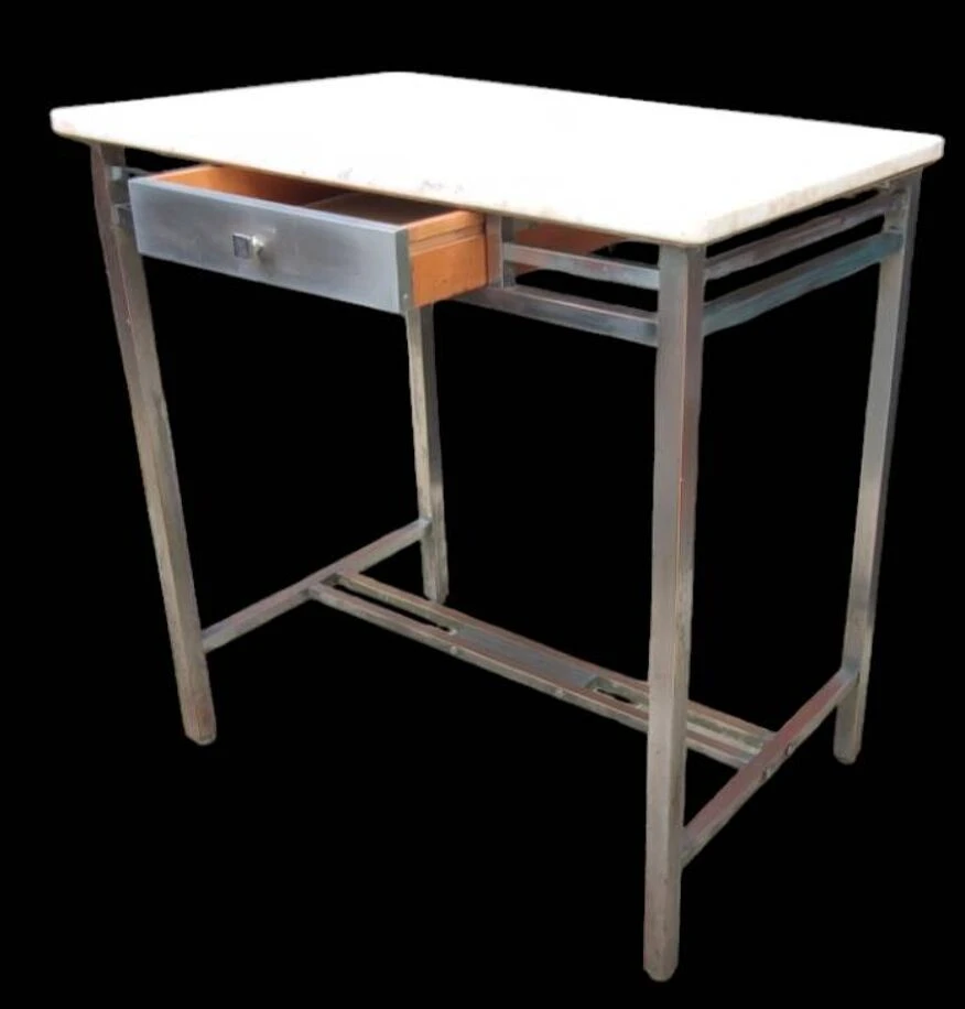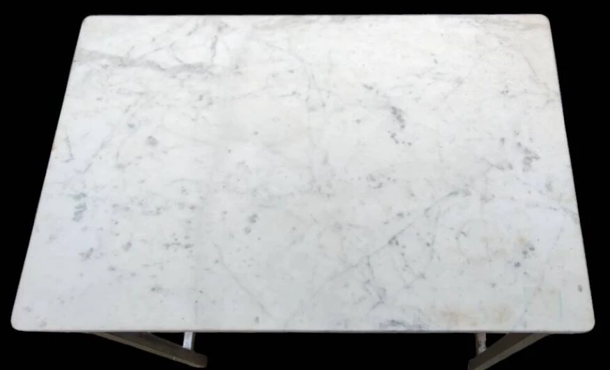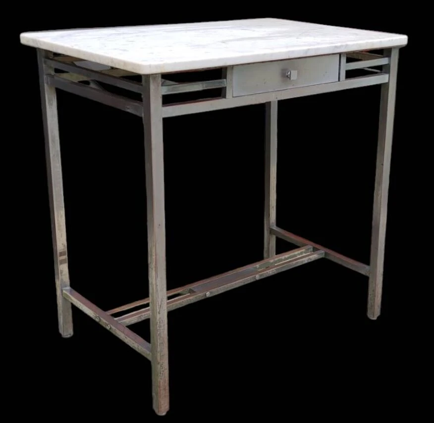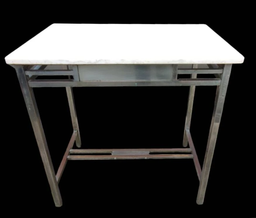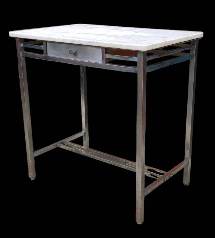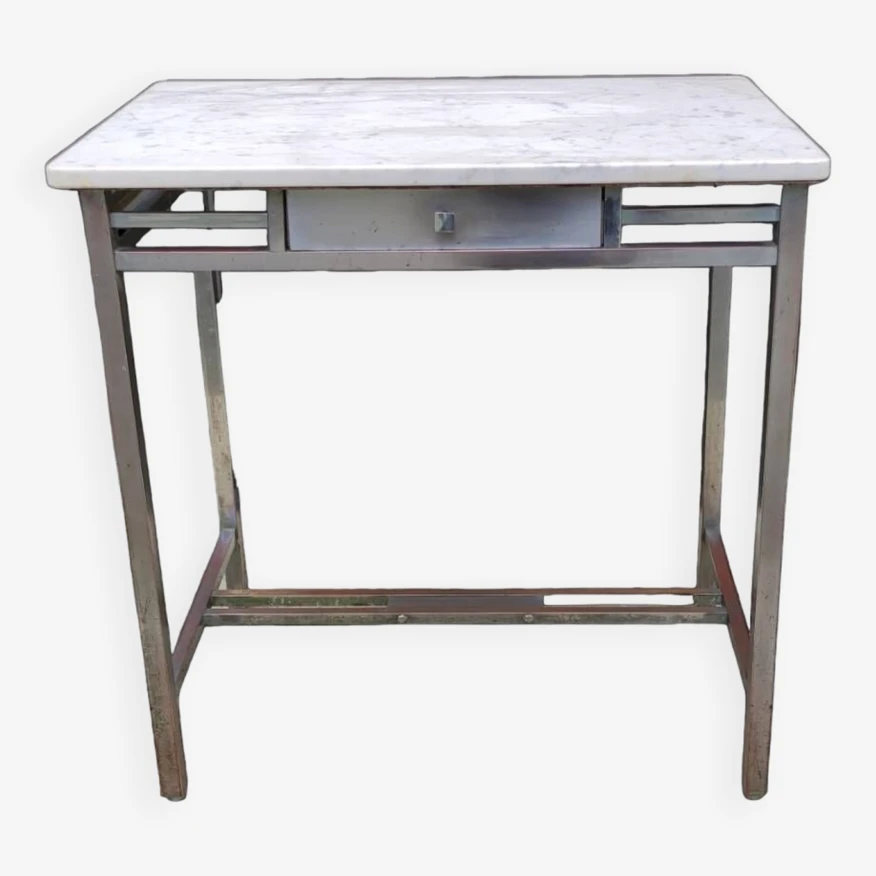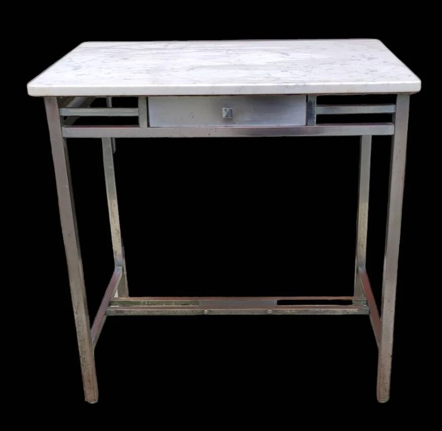 Art deco side table/desk nickel-plated copper base white marble top from the hermitage hotel in la baule.