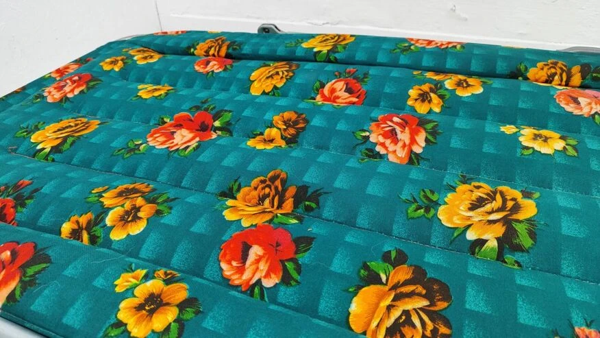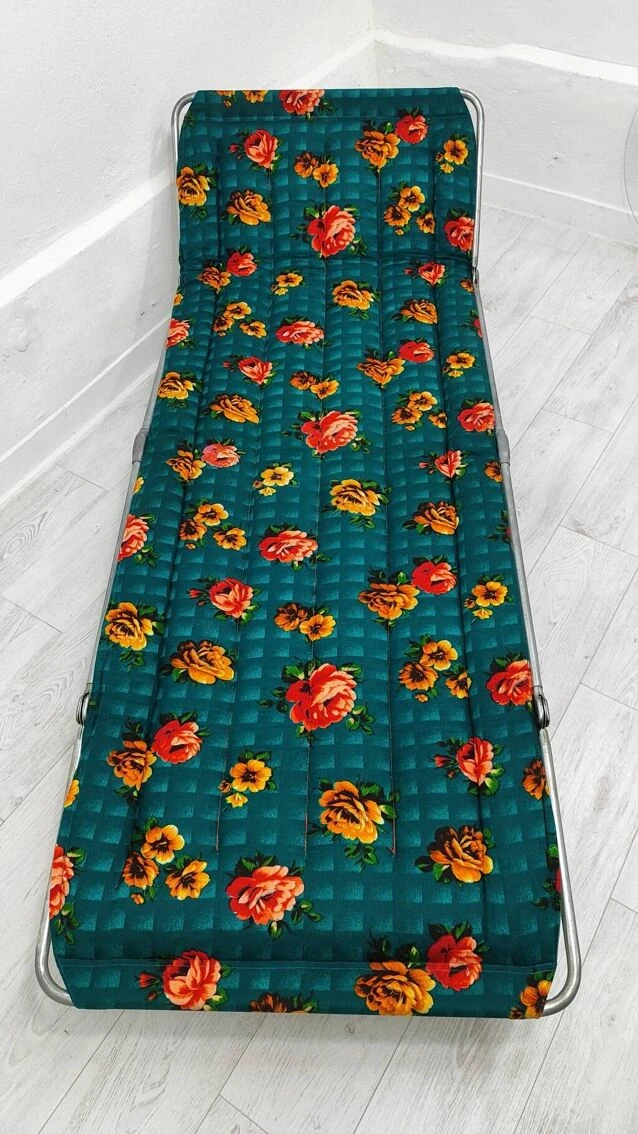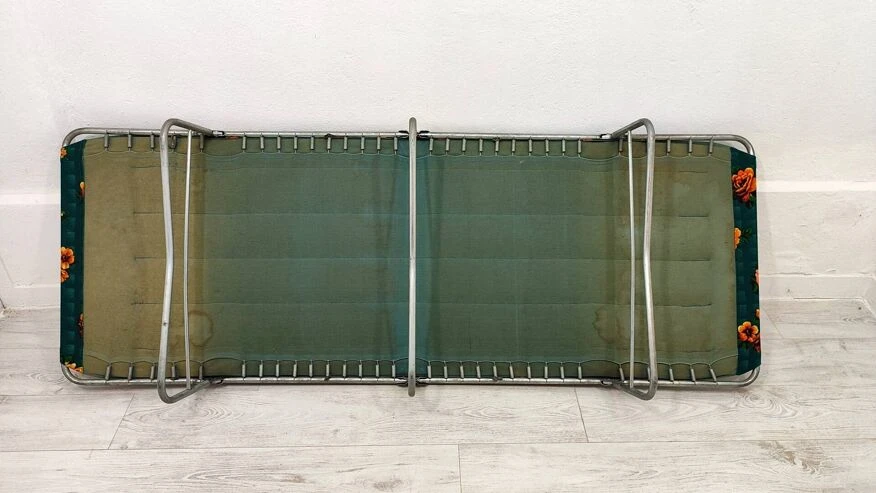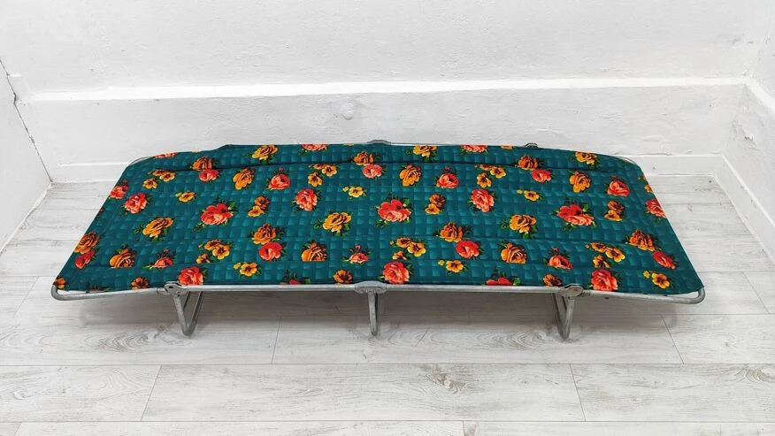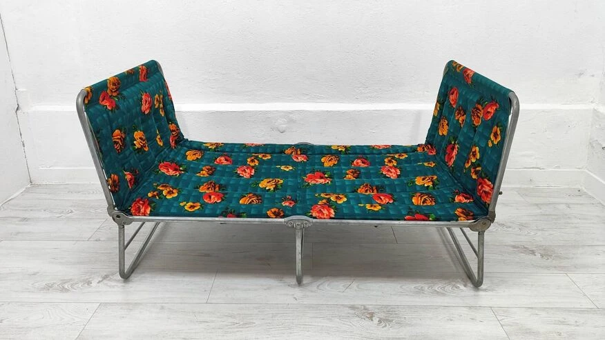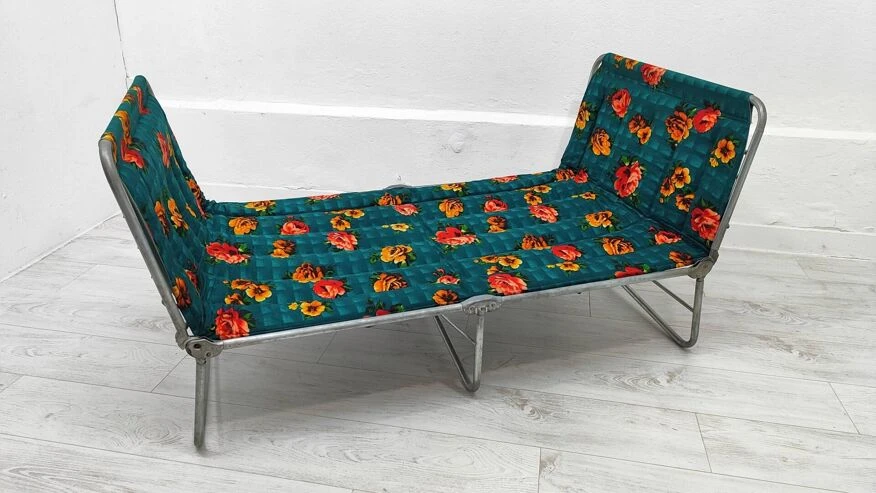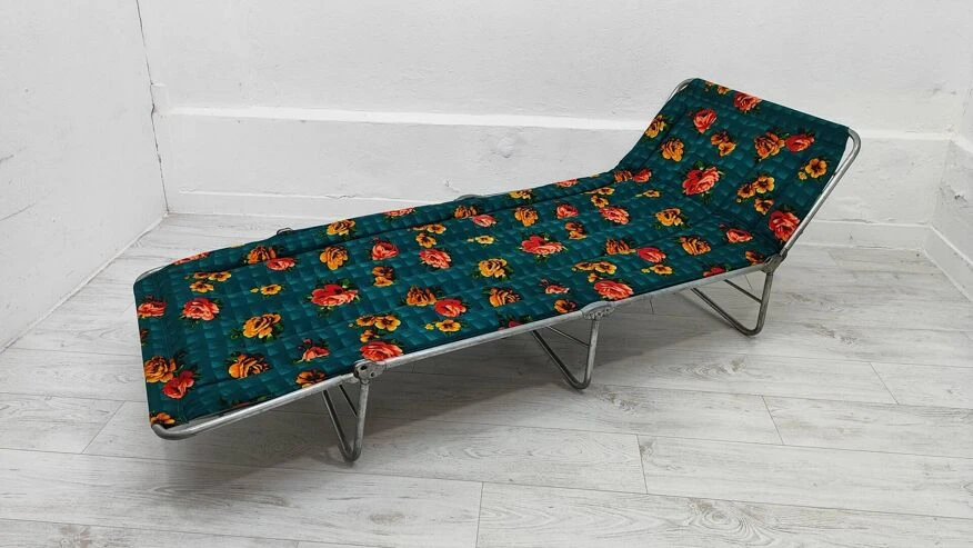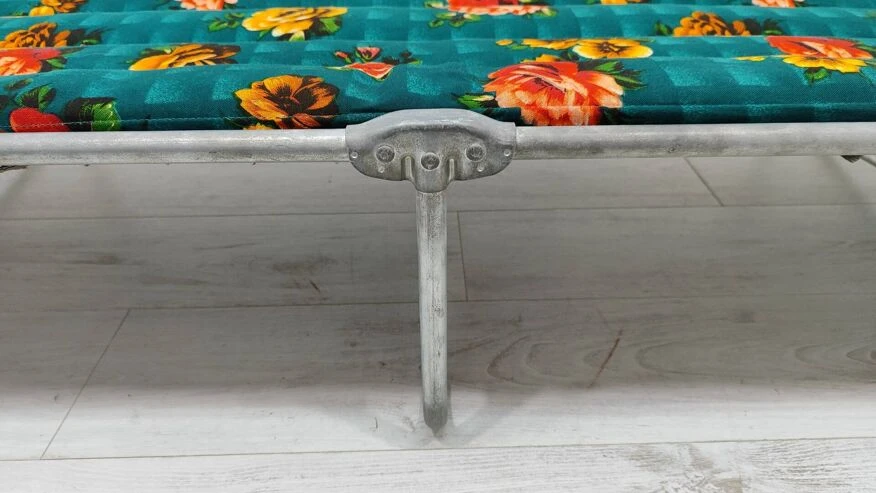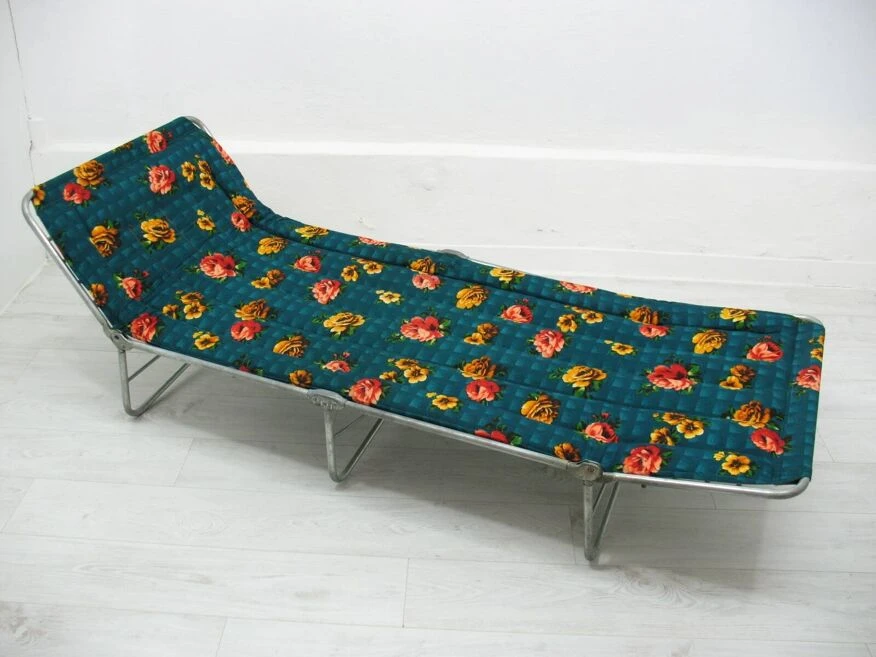 Camping bed – Bahmuller deckchair, Germany, 1970s. Visible local traces of time and use. Discoloration on the bottom of the bed.
