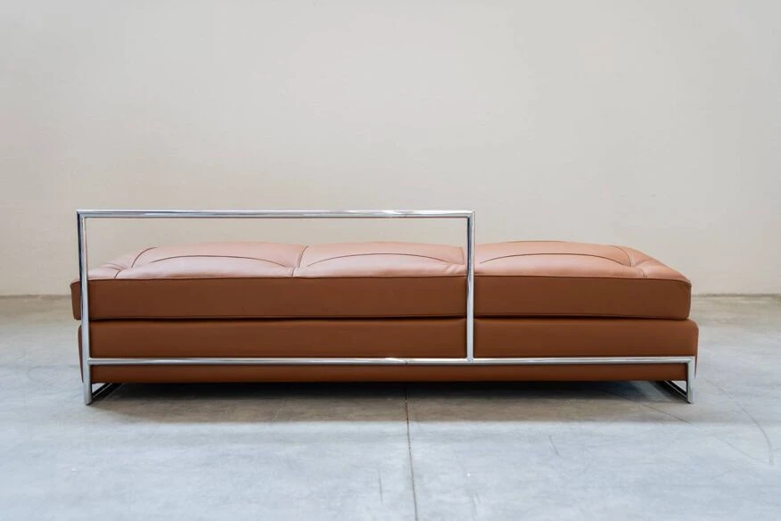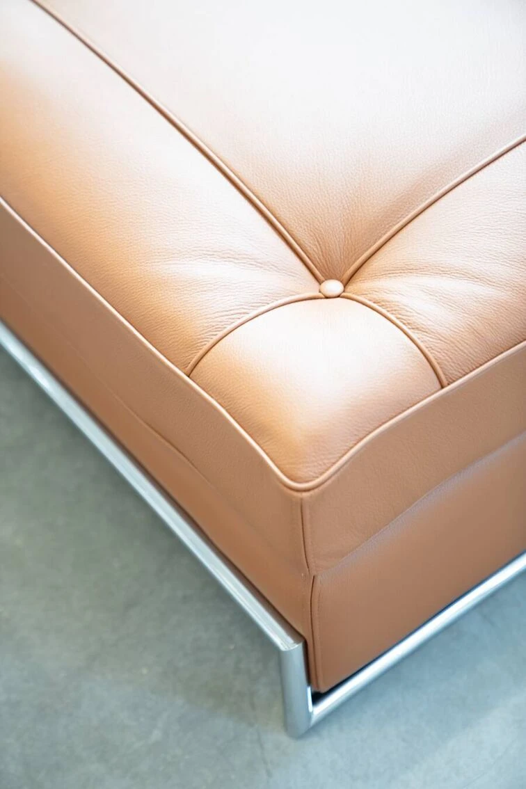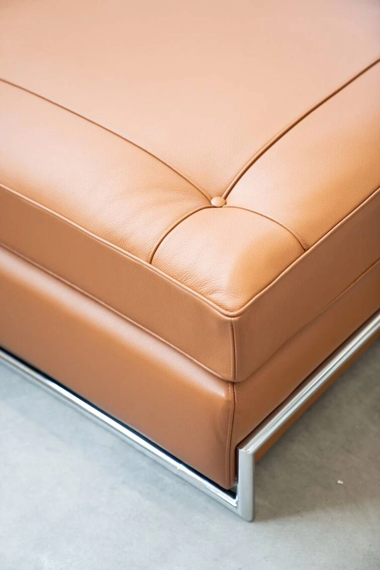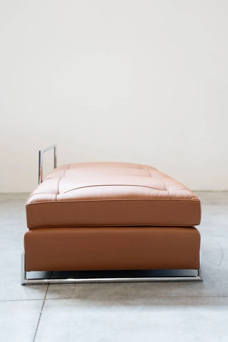 Sofa bed in cognac leather, handmade by eileen gray, 1980/1990 structure in chromed steel tube, cushions in polyurethane rubber and dacrom, covered in cognac-colored leather dimensions h61 X l190 X d85 – seat height 42cm – kg40 design period 1980/1990 year of production 1980/1990 country of production germany designer eileen gray manufacturer collection vereinigte werkstatten color light brown, silver material leather, chrome steel condition like new measurements h61 X l190 X d85 – hsit 42cm – kg40 the costs of postage is payable, ask for a quote before buying.