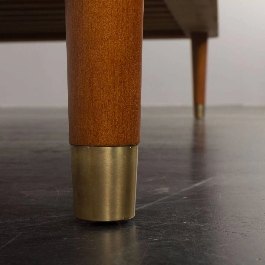 It showcases excellent craftsmanship, with suitably selected teak wood that matches across all parts and includes brass details.