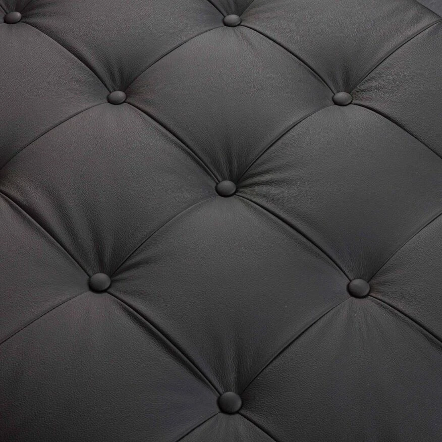 A nicely profiled wooden frame with gently rounded corners not only keeps the mattress stable but also perfectly harmonizes with the black upholstery, creating a timeless design.