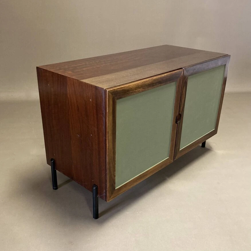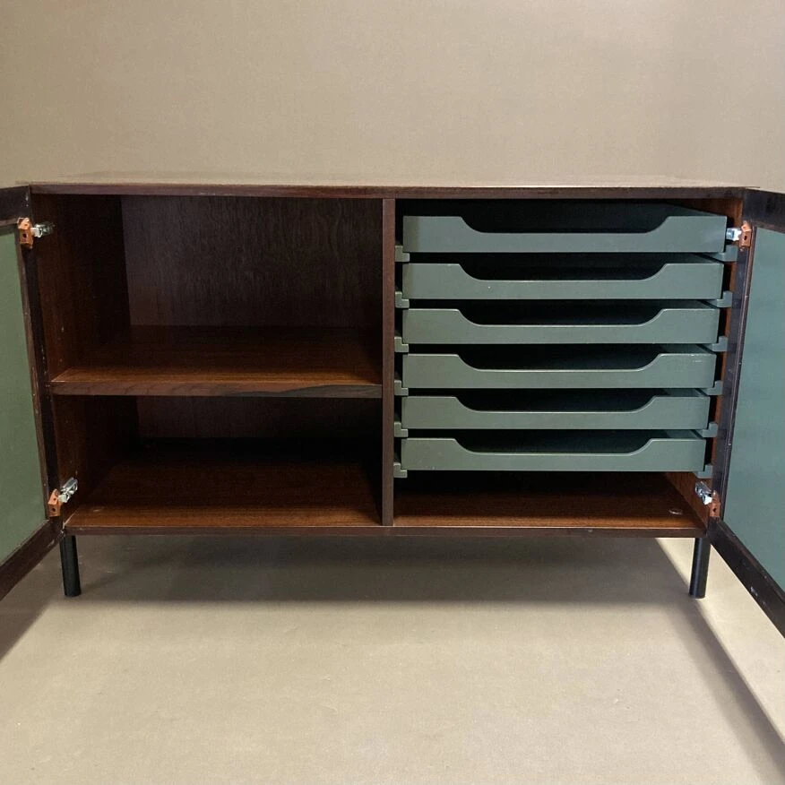 Period: 1950…description: scandinavian design chest of drawers…material: rosewood / metal…dimensions: height: 64 cm / width: 100 cm / depth: 47 cm…condition: very good general condition (nothing to report).