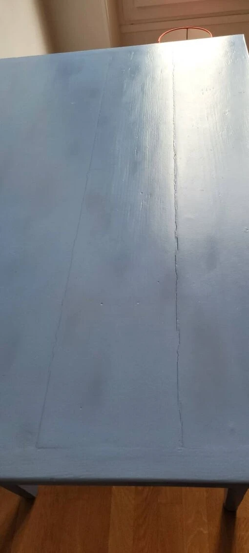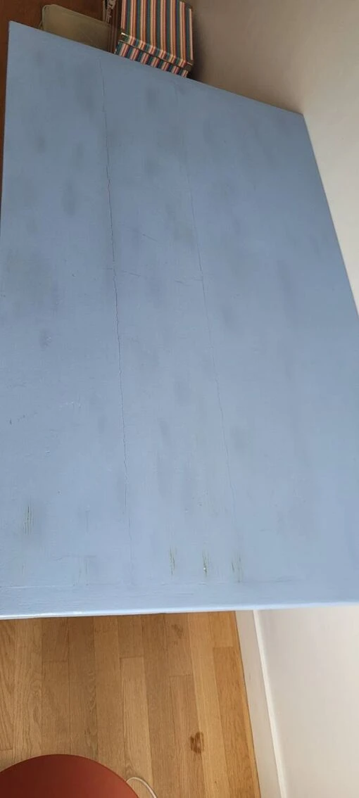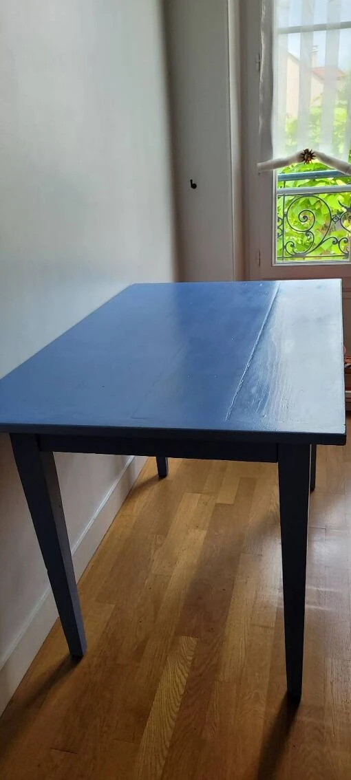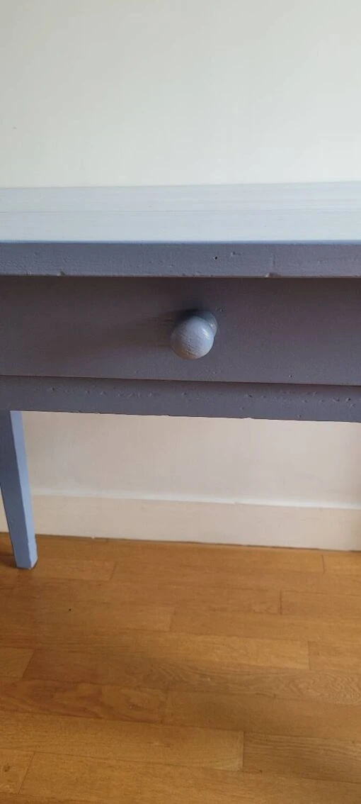 One-drawer desk or old table painted blue cracks on the top which give it a vintage appearance which gives it all its charm.