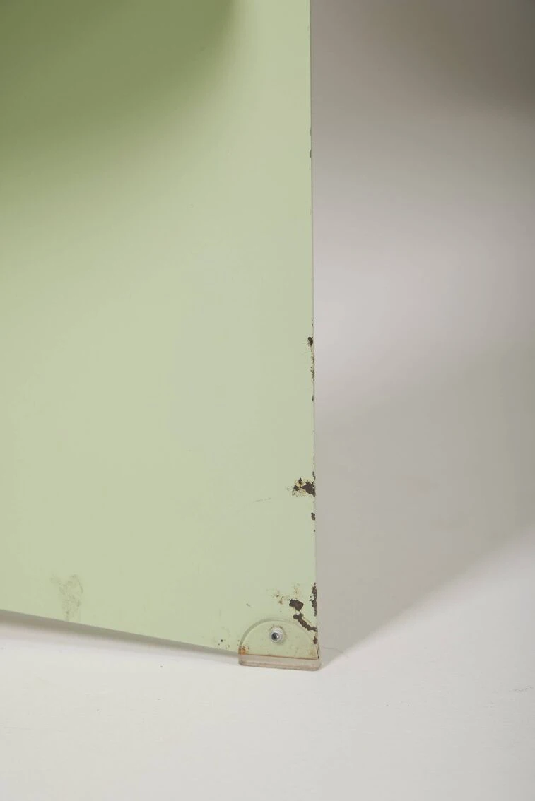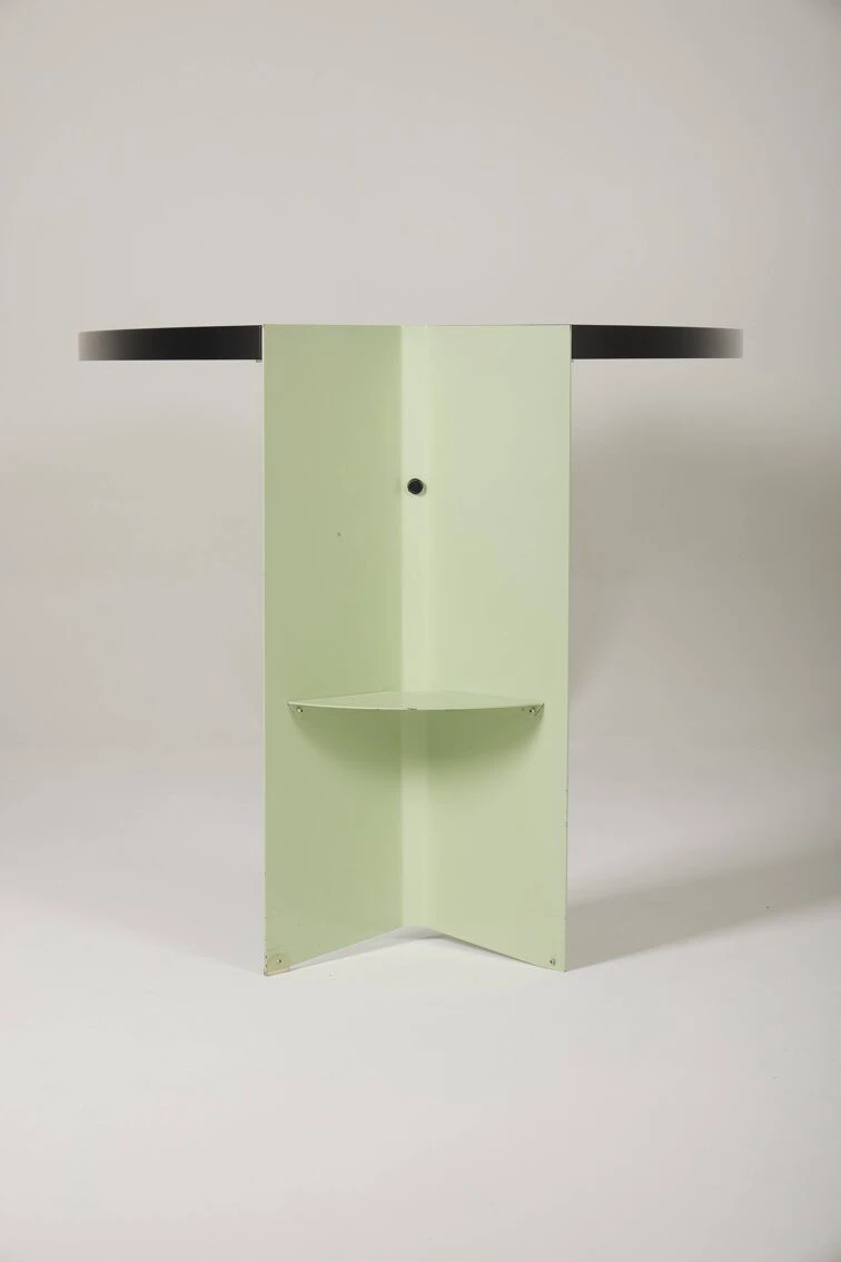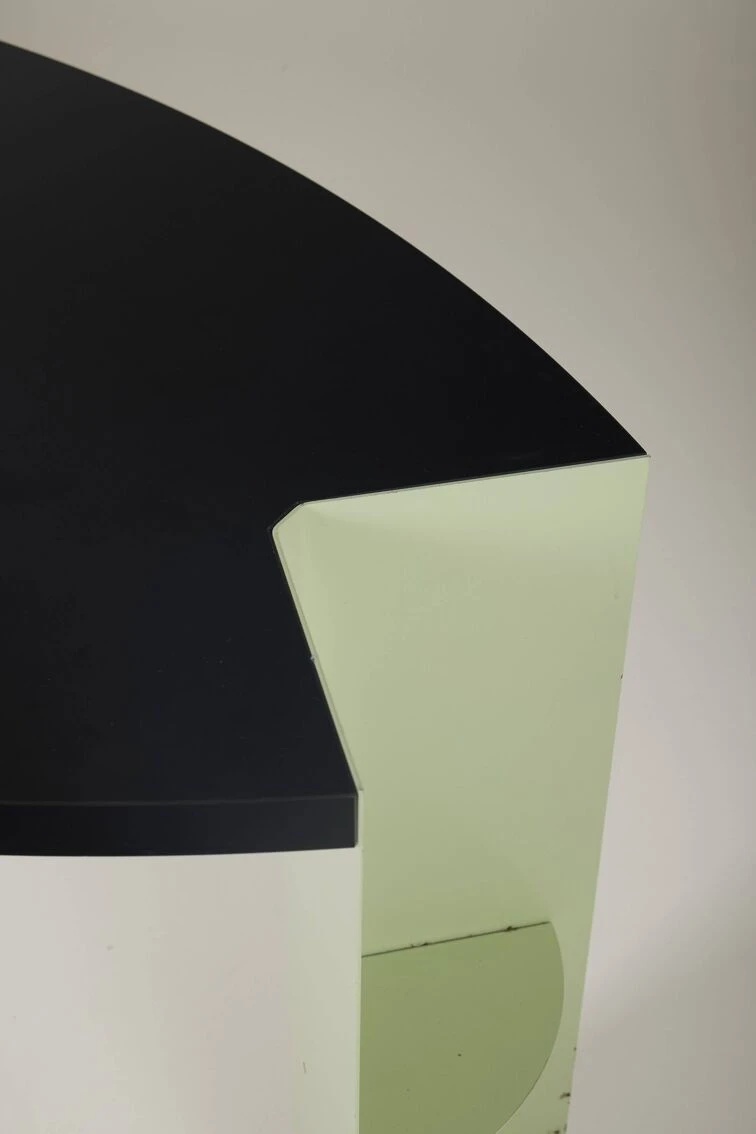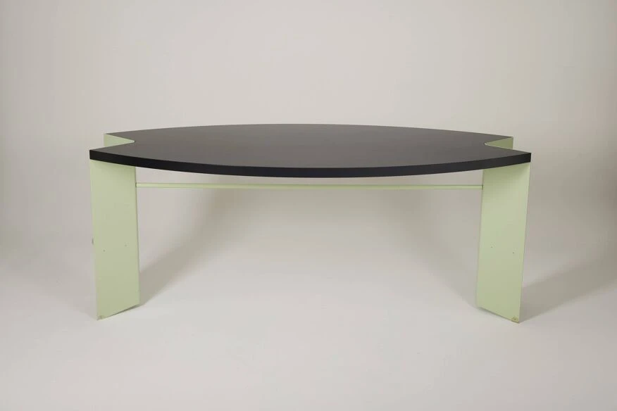 This large desk table has a structure in black laminate and green lacquered canvas.