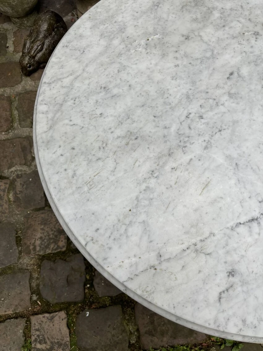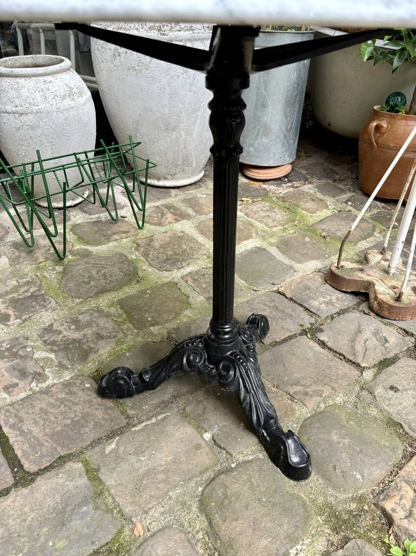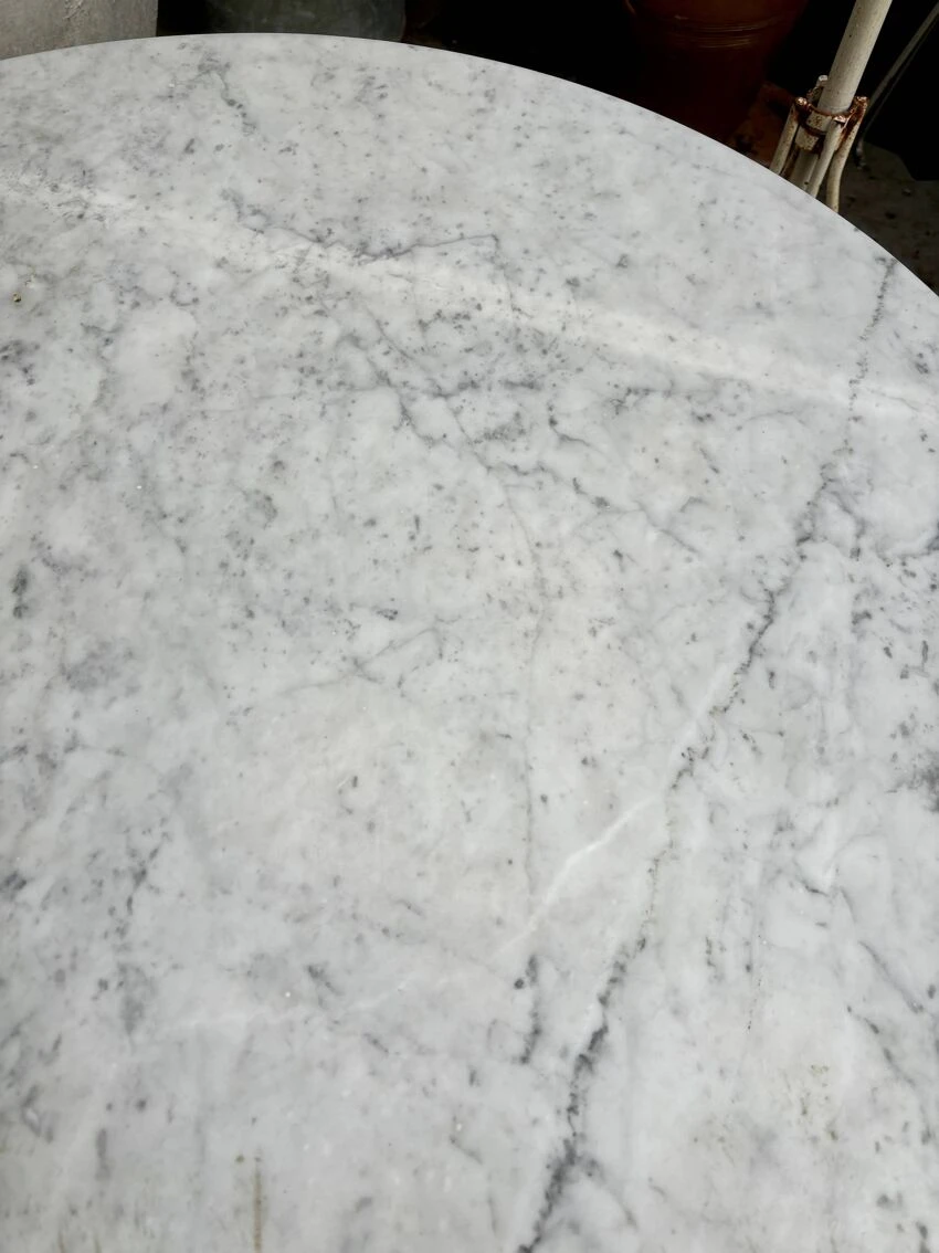 In perfect condition since the base has no chips of paint and the marble top shows no trace of time, this table will find its place in your kitchen, dining room or outdoor terrace and will bring a vintage touch and noble materials to your decoration.
