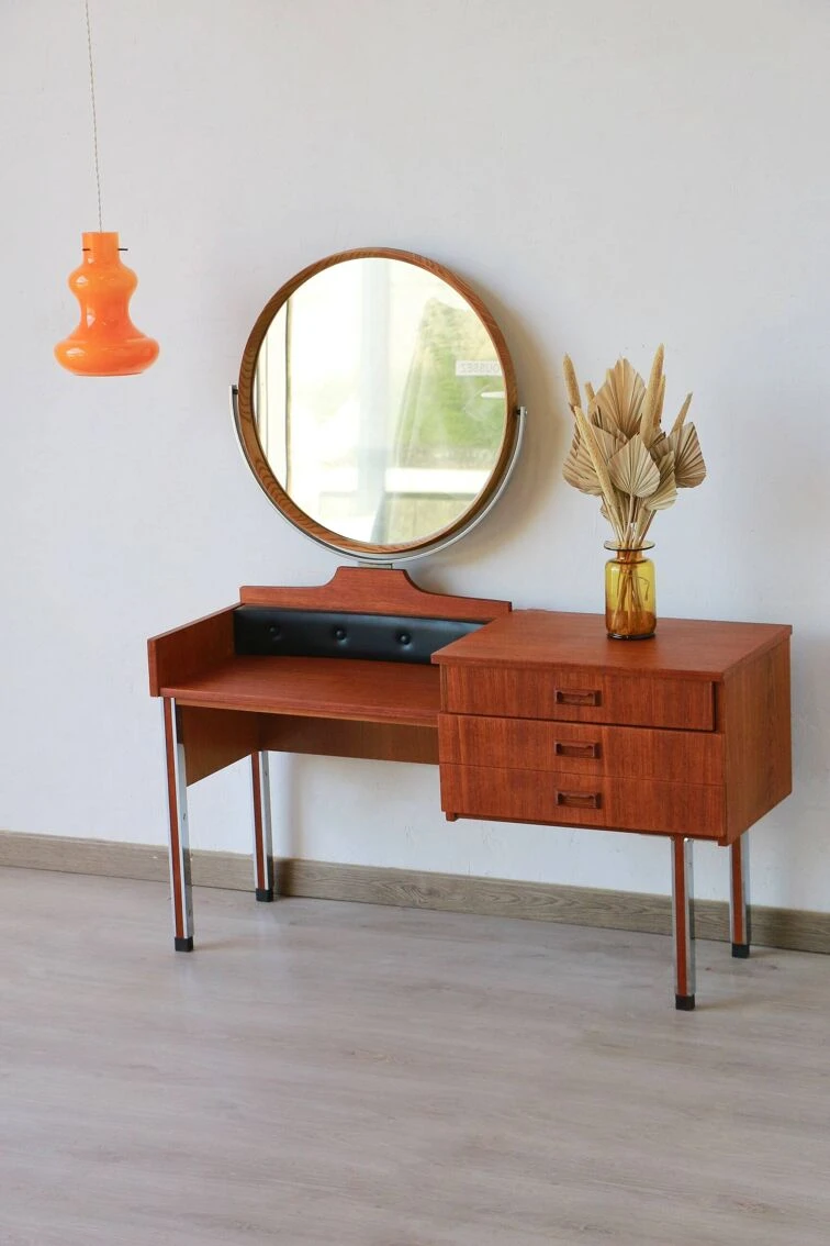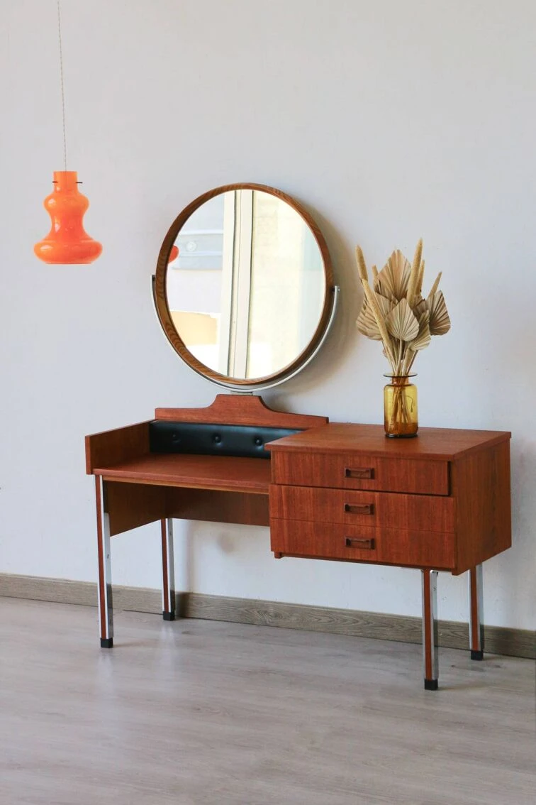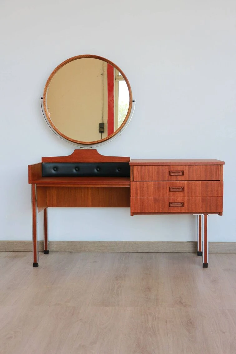 Dressing table – large round mirror – 1960s sublime dressing table equipped with a large round rotating mirror dating from the 1960s.