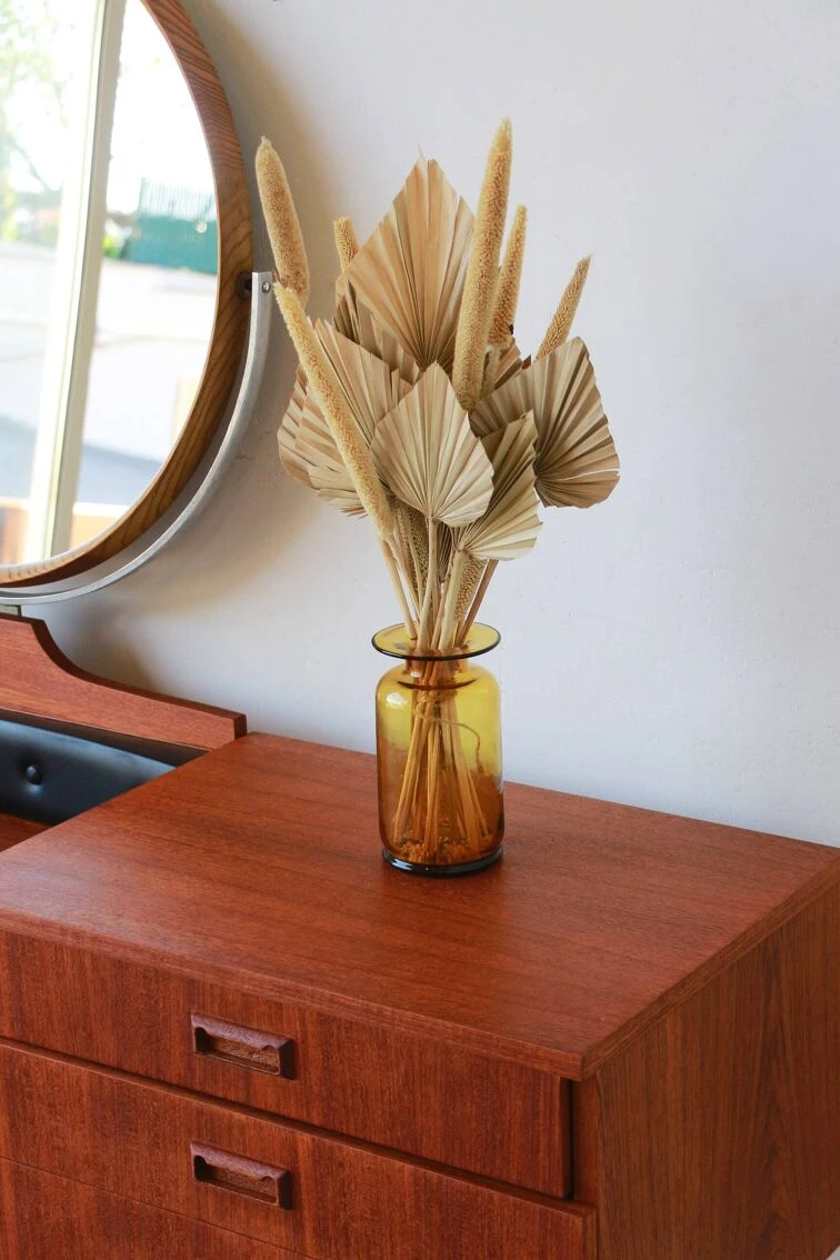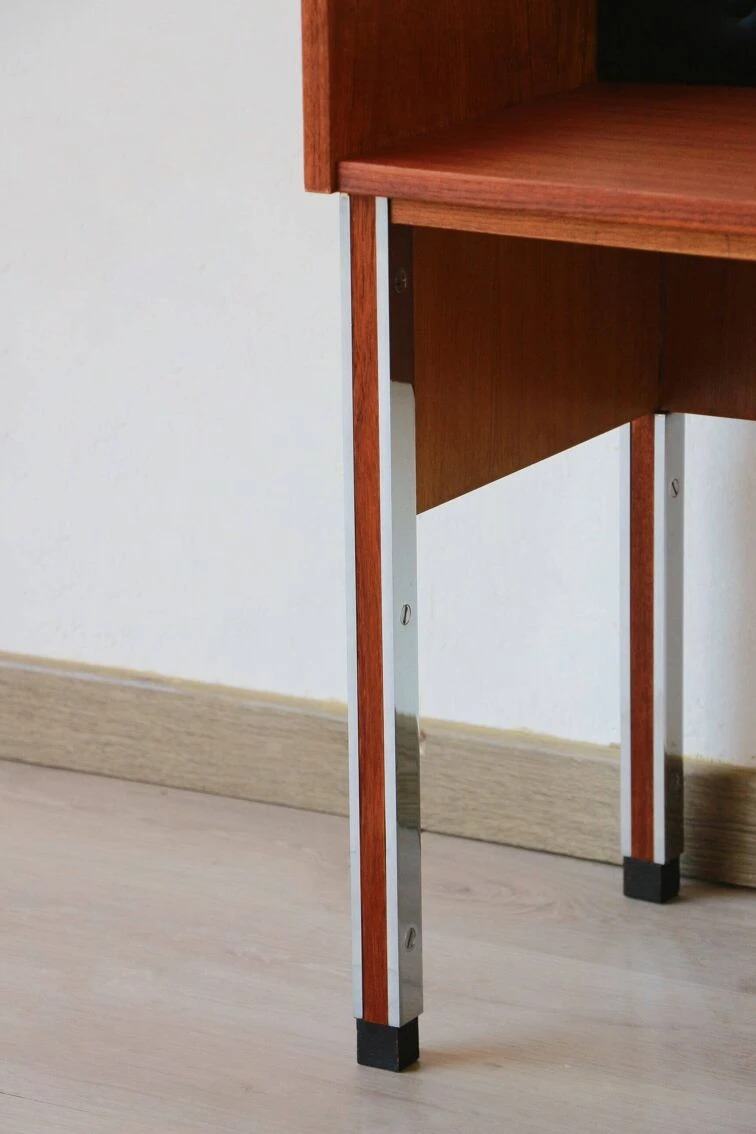 Dimensions: l 125 X d 42 X h 144 (with mirror) h 69 (without mirror) materials: teak origin: england restoration: completely sanded and oiled to nourish and protect the wood.
