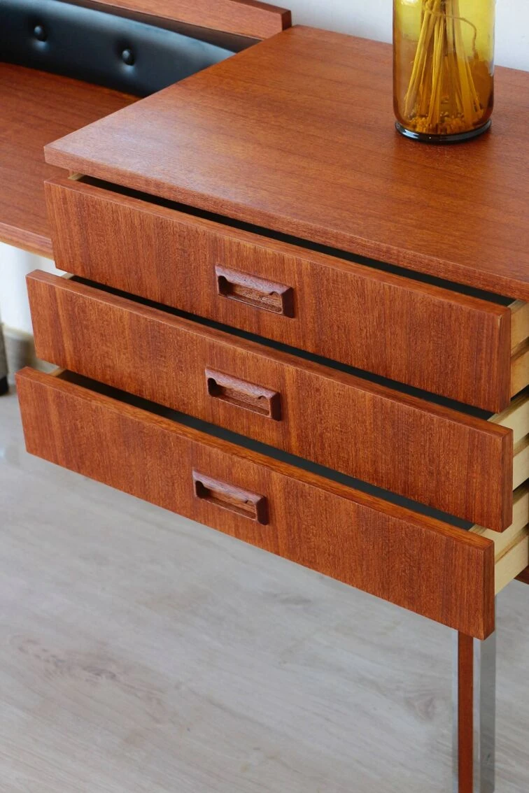 The lowest top is equipped with a padded part in black vinyl. 3 small drawers complete it with pretty rounded and hollow handles.
