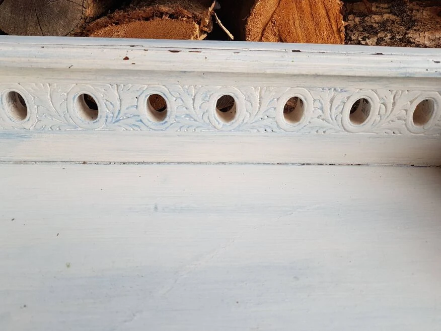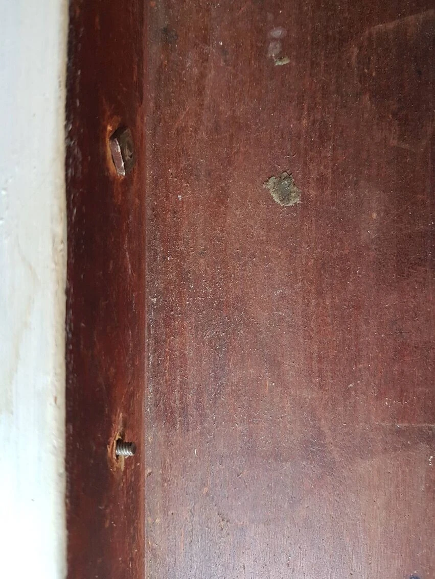 Various chips. 1 large drawer, 2 small ones and a central molding.