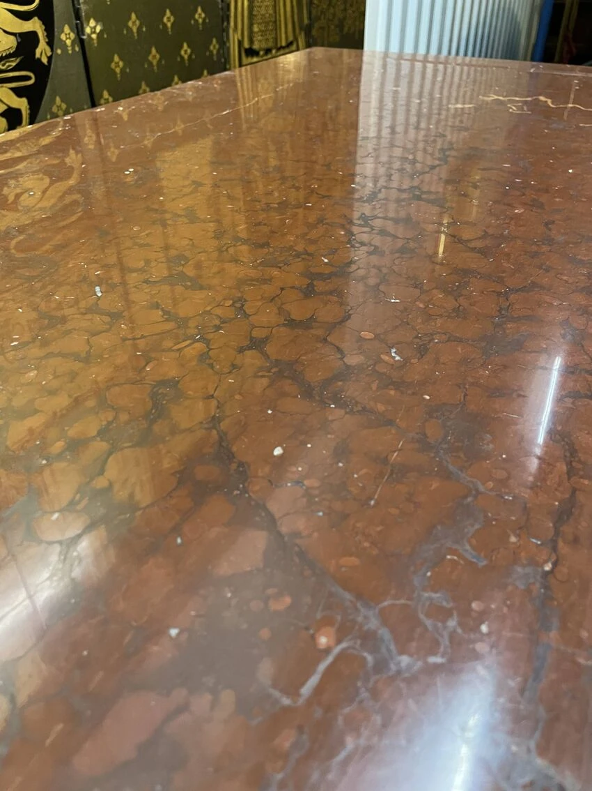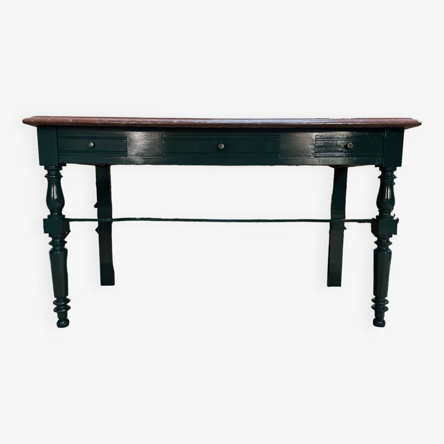 Louis philippe style dressing table / dressing table in painted wood and thick rouge griotte marble.