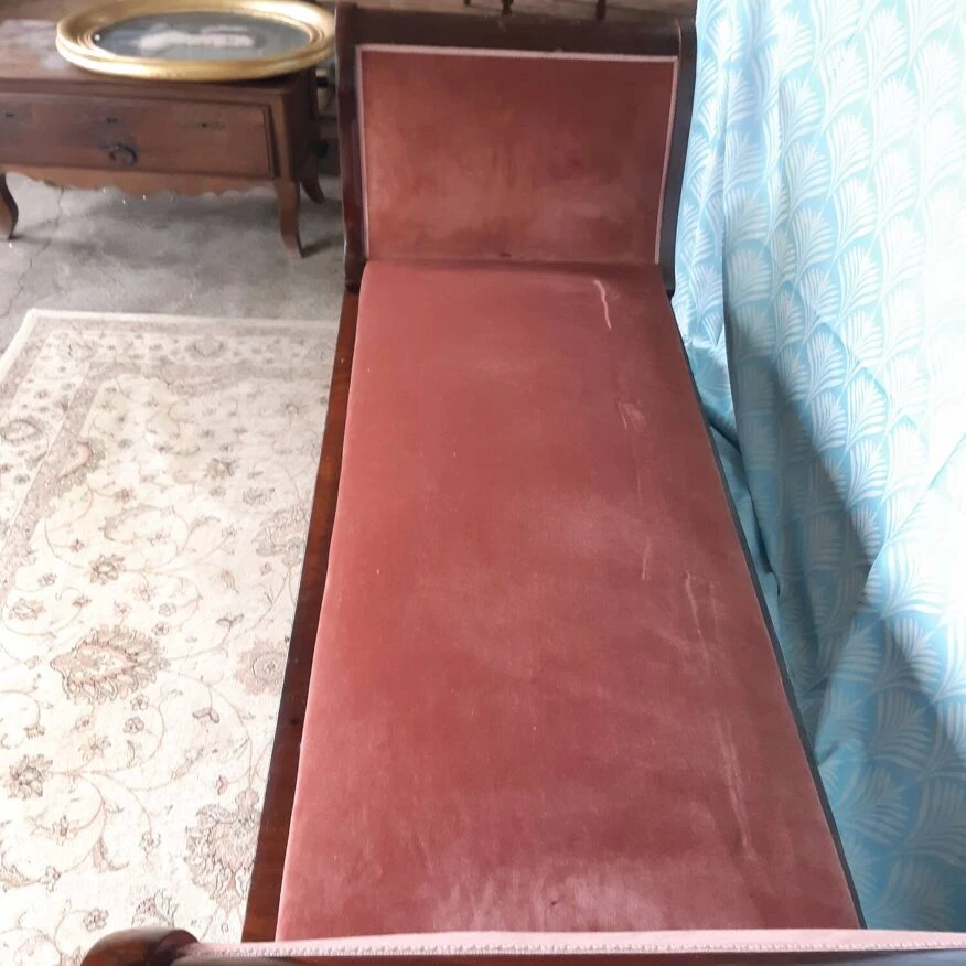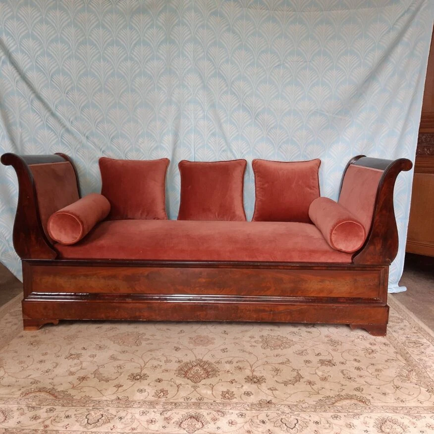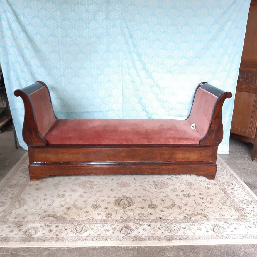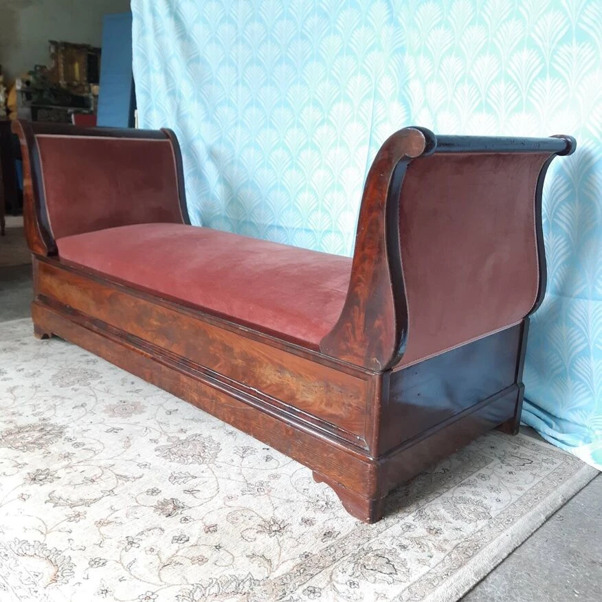 Empire period daybed in mahogany, the upholstery is in very good condition, the fabric has some rubbing marks, while the structure has some old restorations, everything is in very good condition.