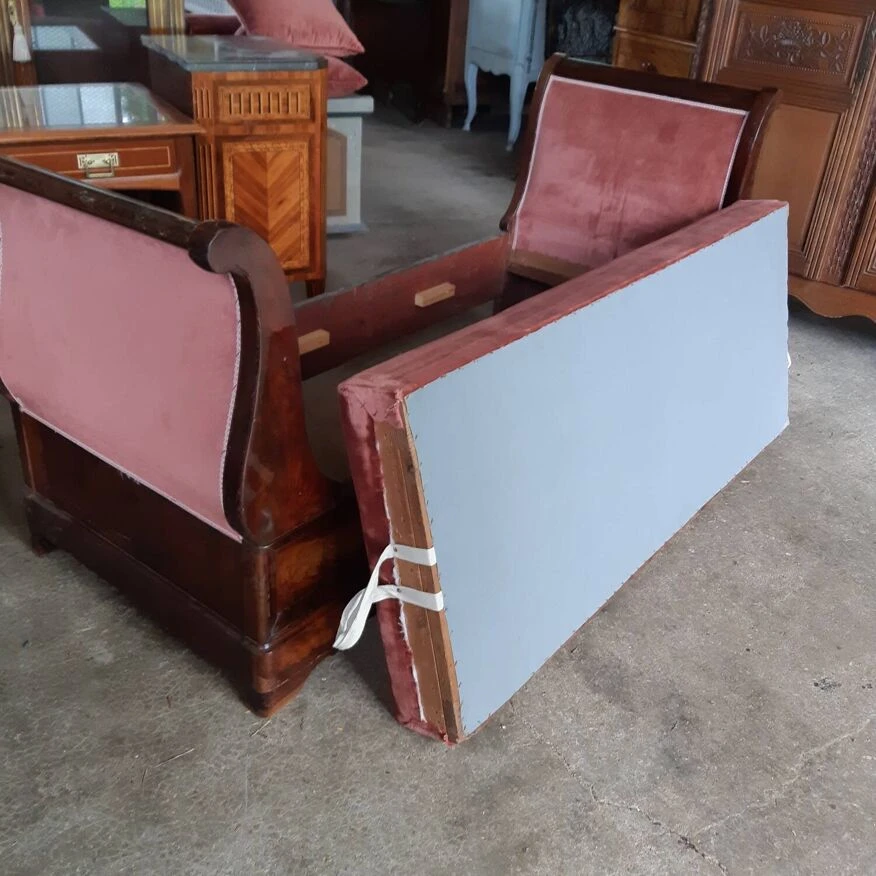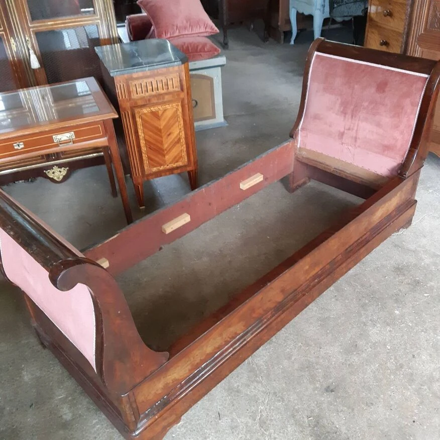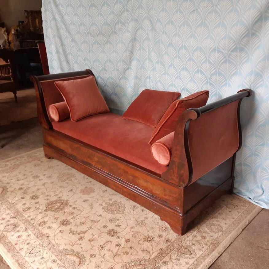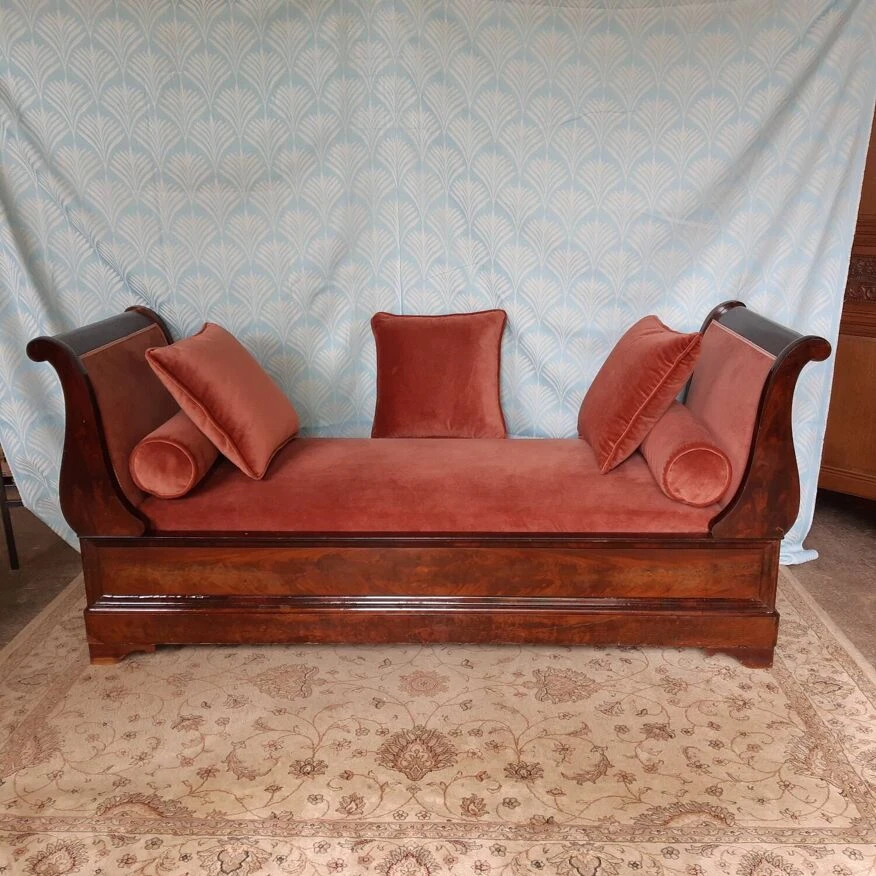 Empire period daybed in mahogany, the upholstery is in very good condition, the fabric has some rubbing marks, while the structure has some old restorations, everything is in very good condition.
