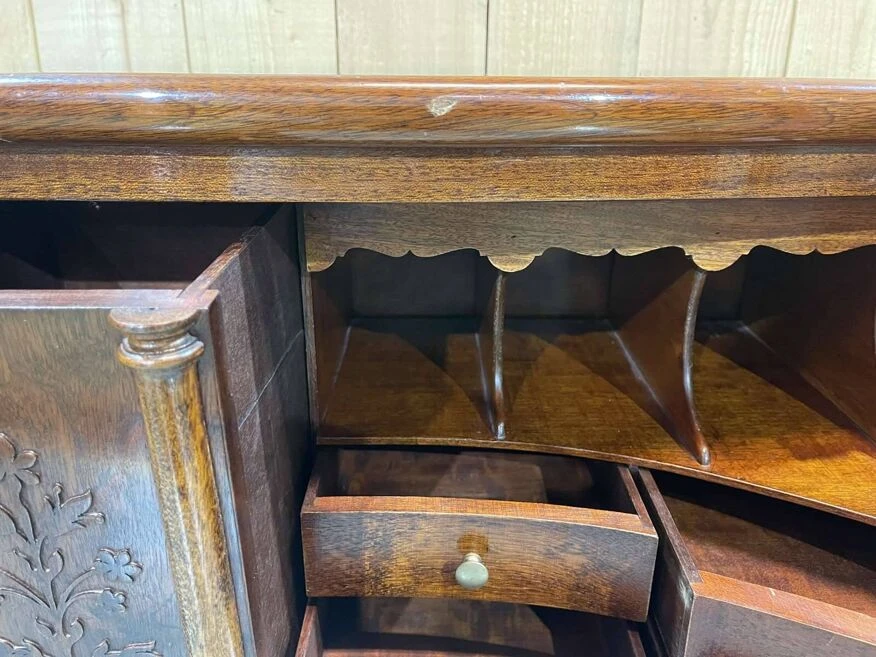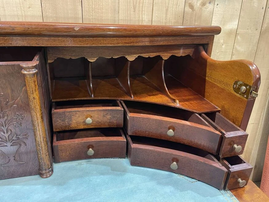 English secretary chest of drawers from the 1950s – l=1m06, d=52cm, open d=89cm, h=1m10.