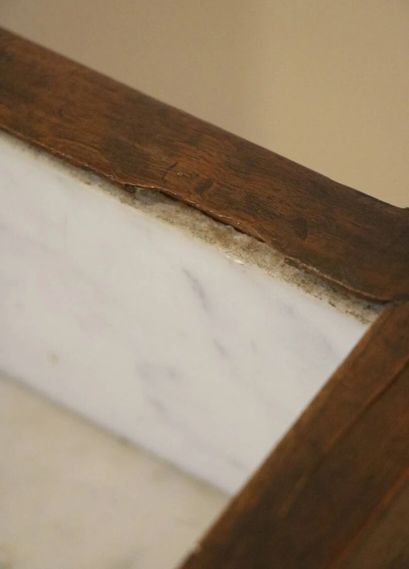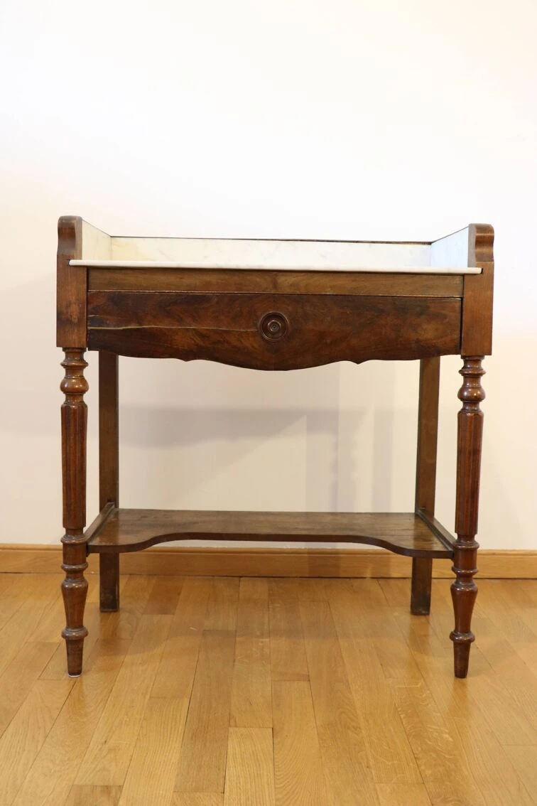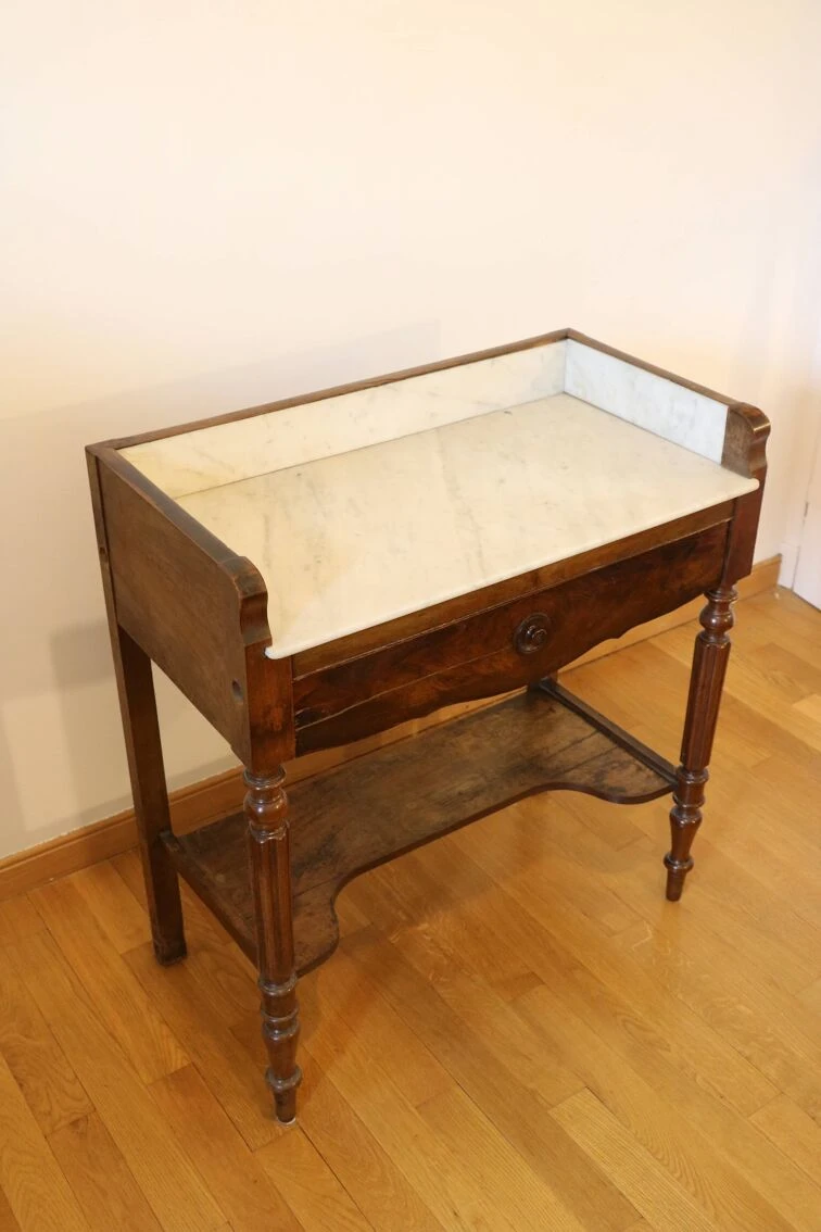 Dressing table with white and gray marble top (the marble is in excellent condition).