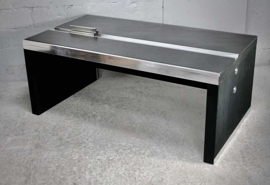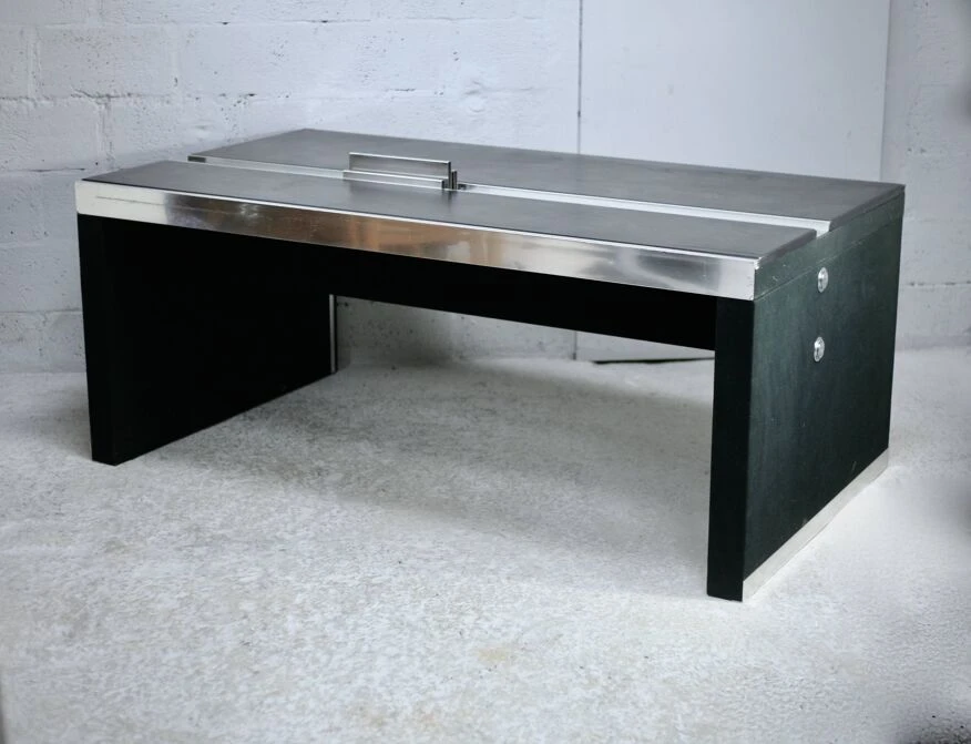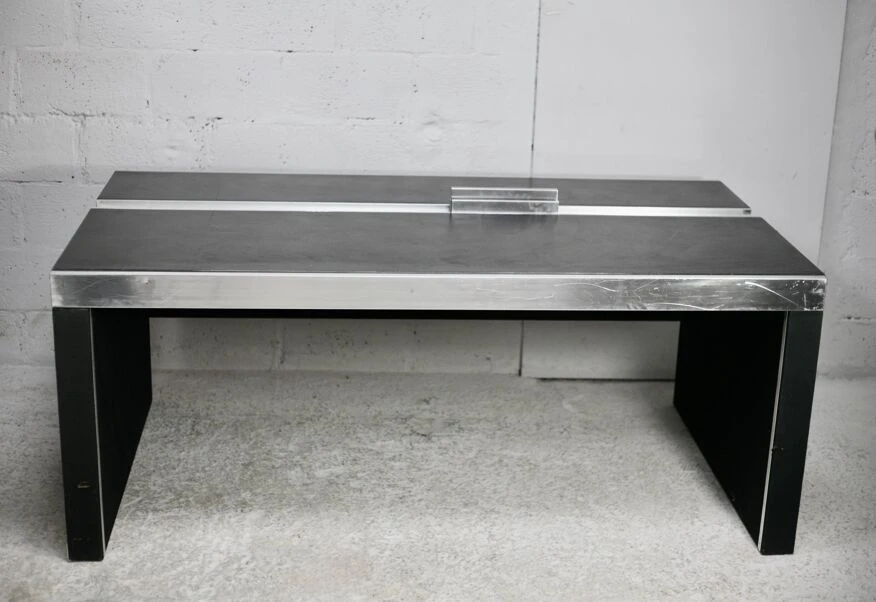 Easily disassembled by hand for transport into 3 parts (1 slightly veiled screw) space age design.