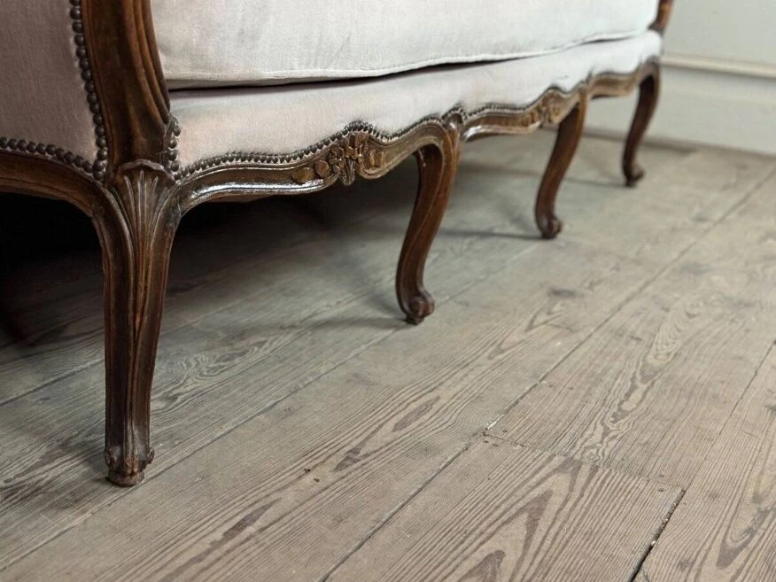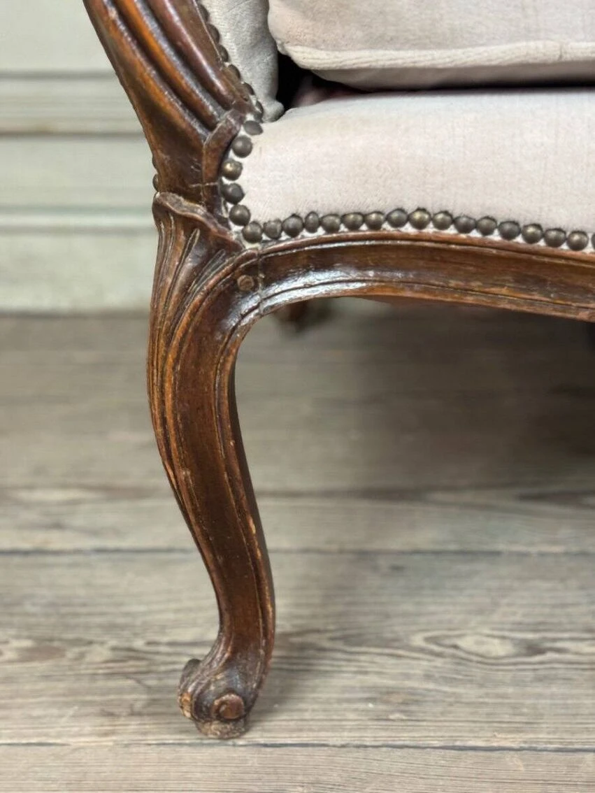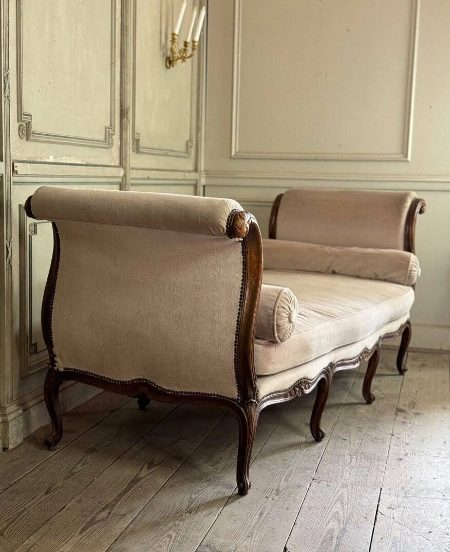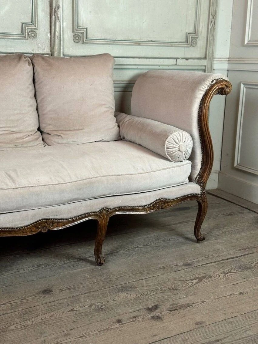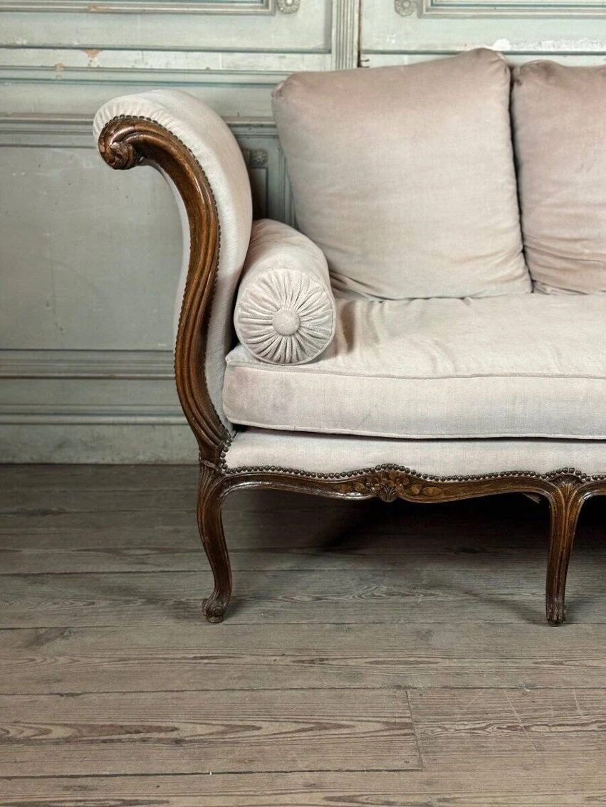 Louis XV daybed in beech carved on all 4 sides, velvet in good condition but it is preferable to replace it.