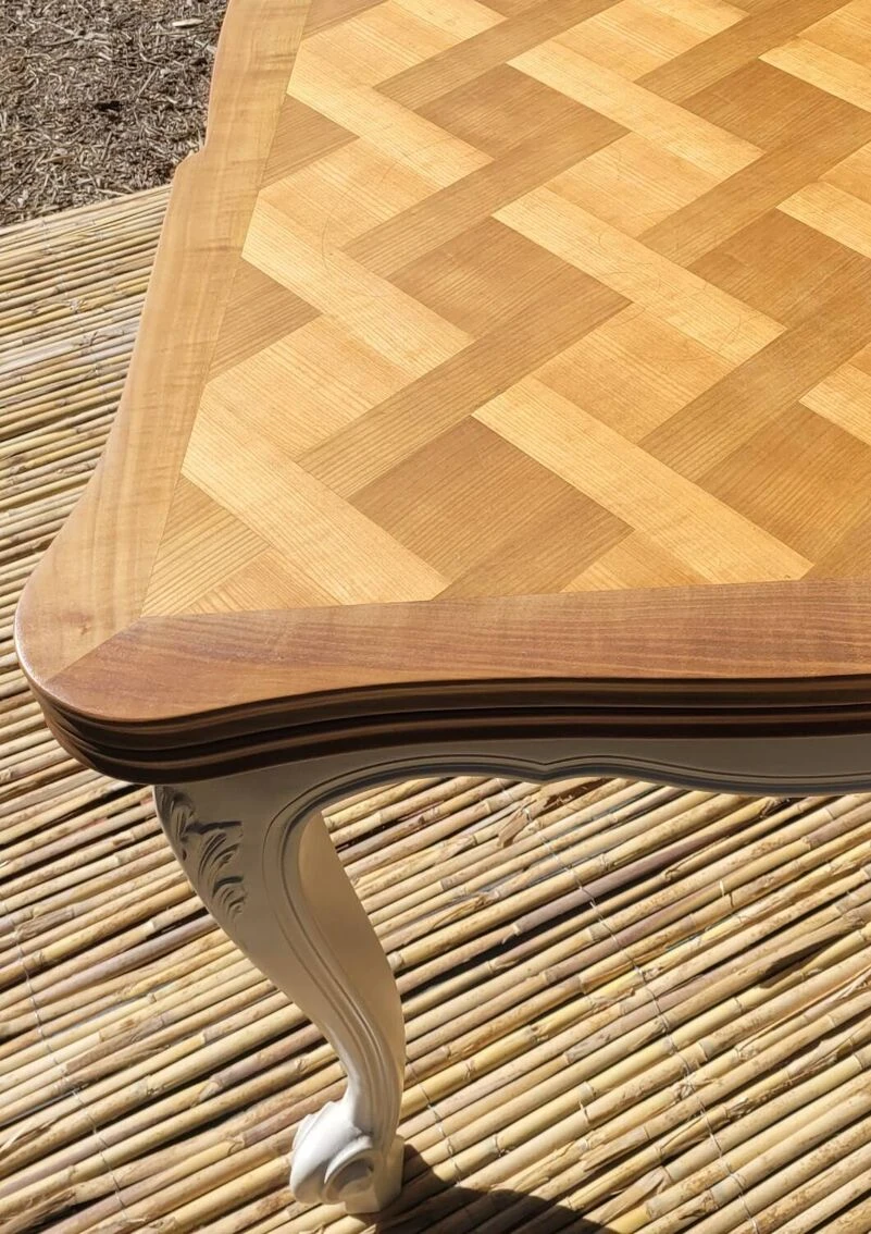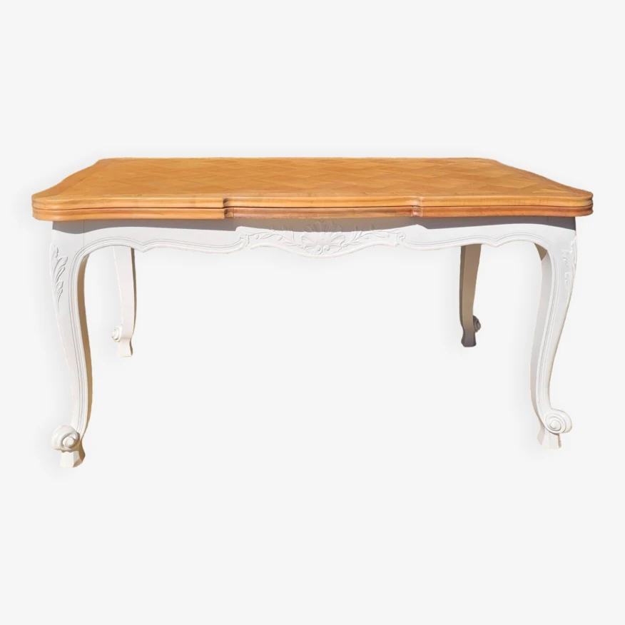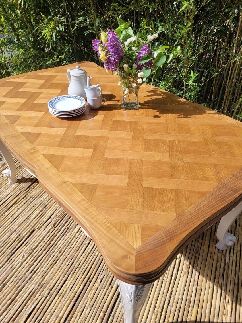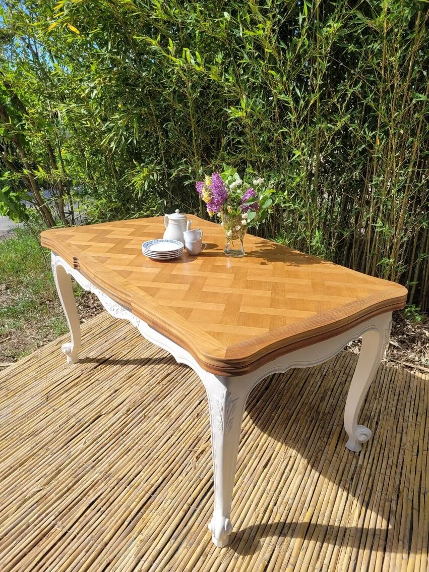 Large Provençal dining table with its 2 extensions, recently renovated. It measures 159cm long and up to 267cm with its 54cm extensions to accommodate lots of people at the table. 📐dimensions: H 78cm. L 159.5cm. L 94.5cm. Light scratches on the board. If you have any questions do not hesitate to write to me. See you soon, Julie.