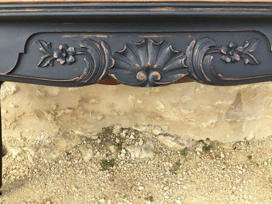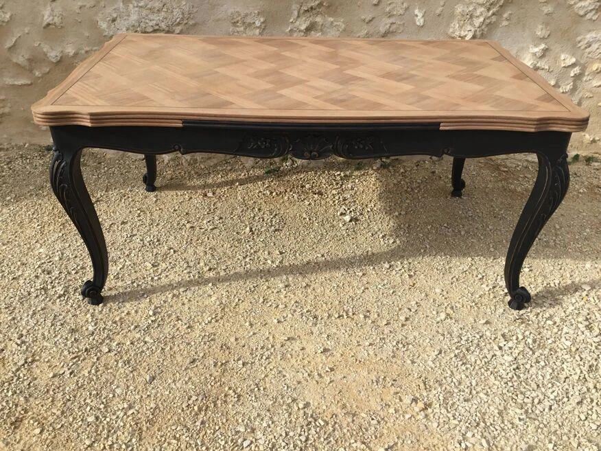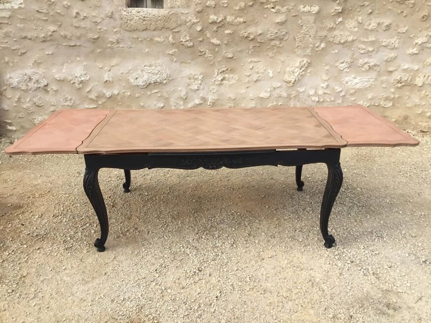 Louis mid 20th century a small marquetry net bordering the top and the extensions.