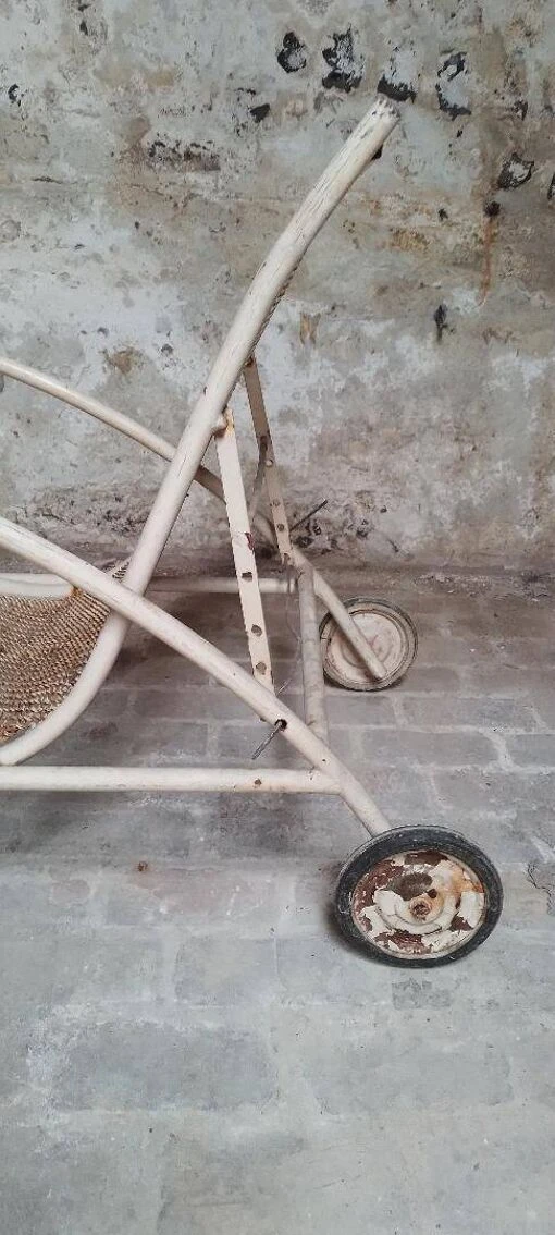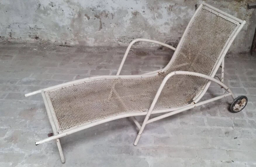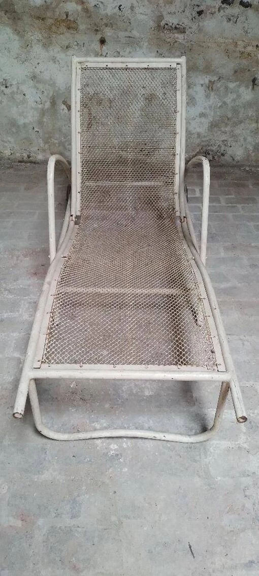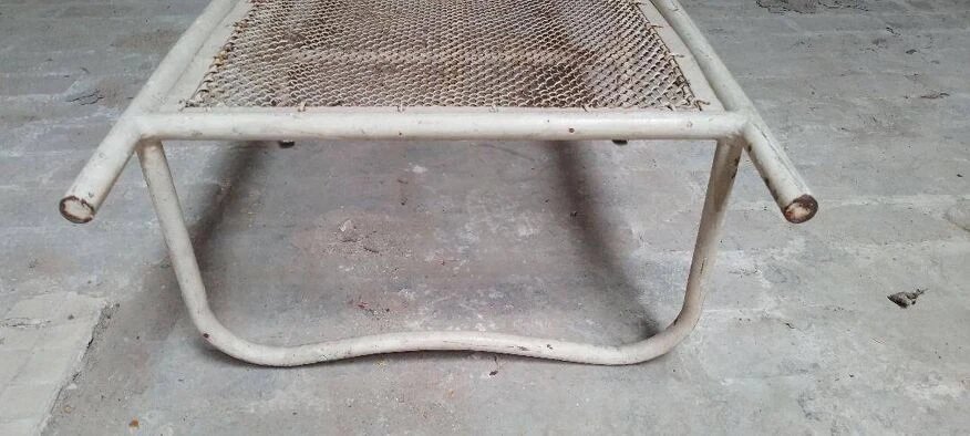 Relatively good condition, metal trellis seat, tubular metal structure.