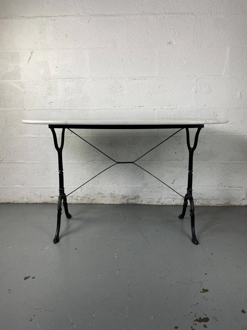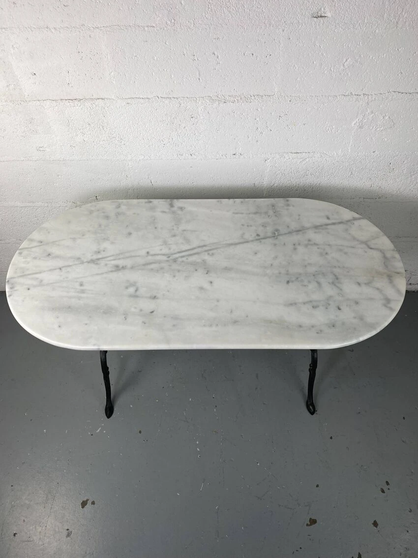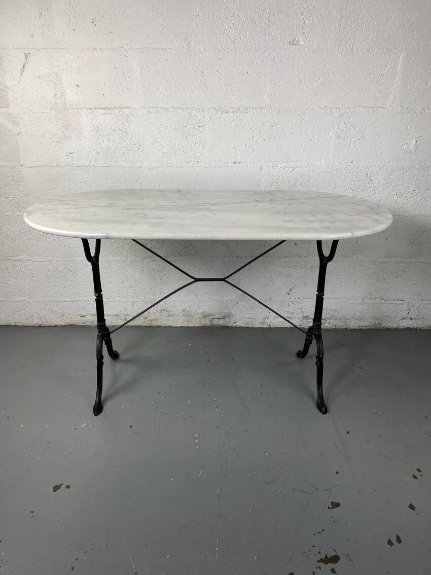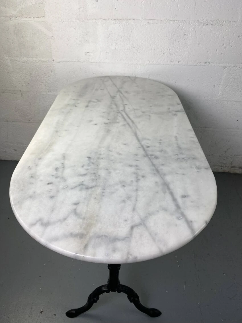 Discover this superb bistro table combining elegance and robustness, with its oval marble top and its wrought iron structure.