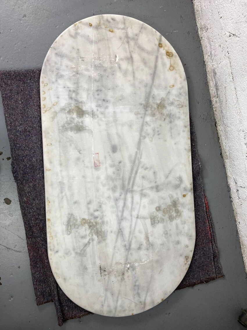 Although showing some signs of wear and discoloration, the marble top remains functional and brings a touch of sophistication to your space.