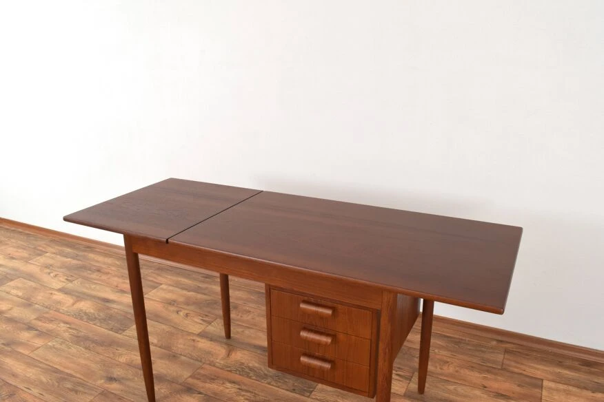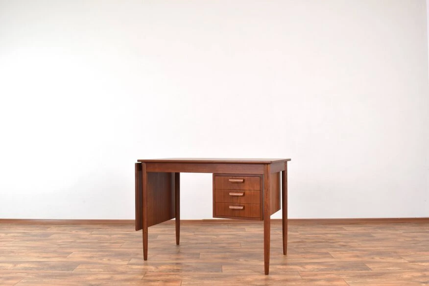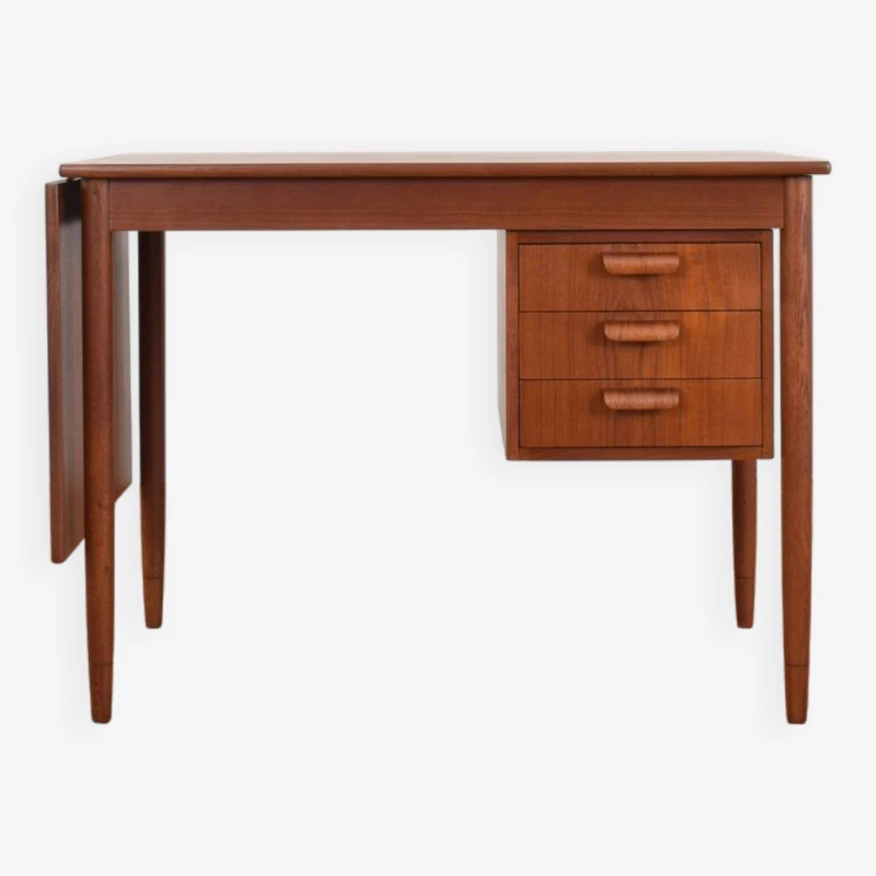 The desk has an additional side tabletop, which folds out after moving the main tabletop to the side.