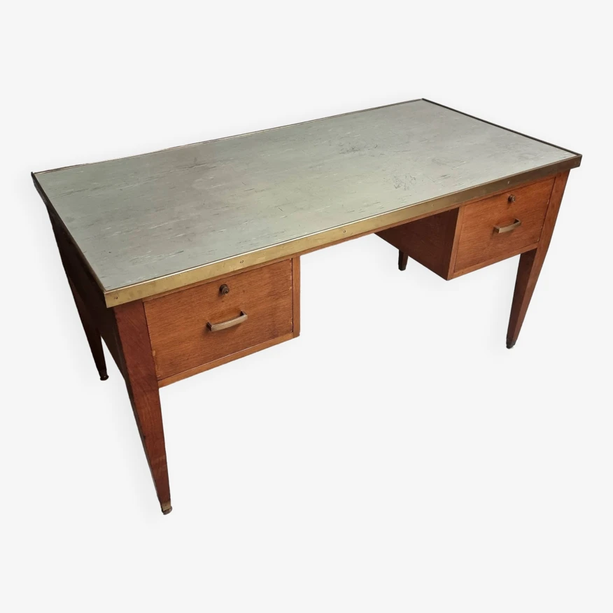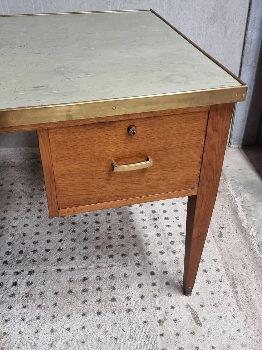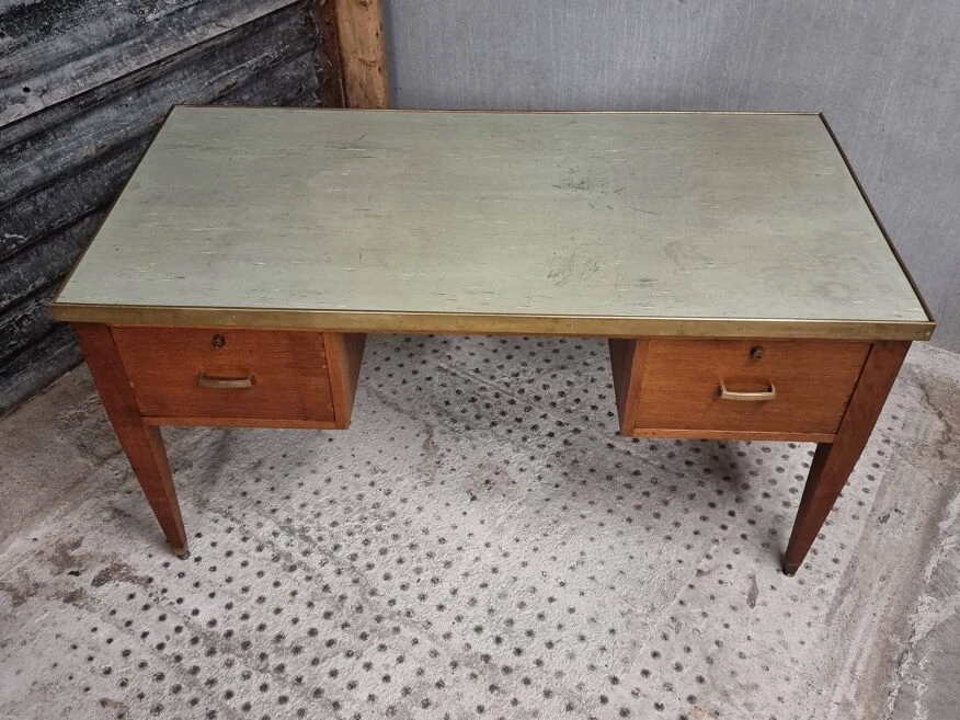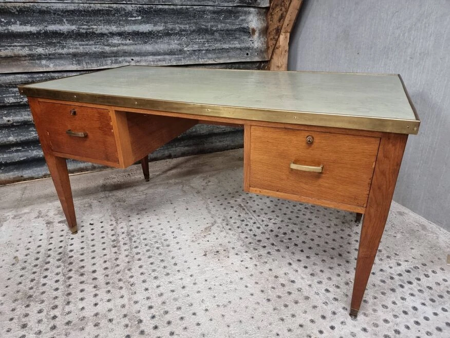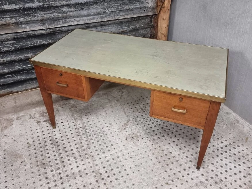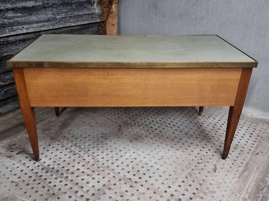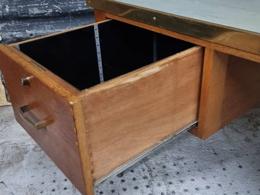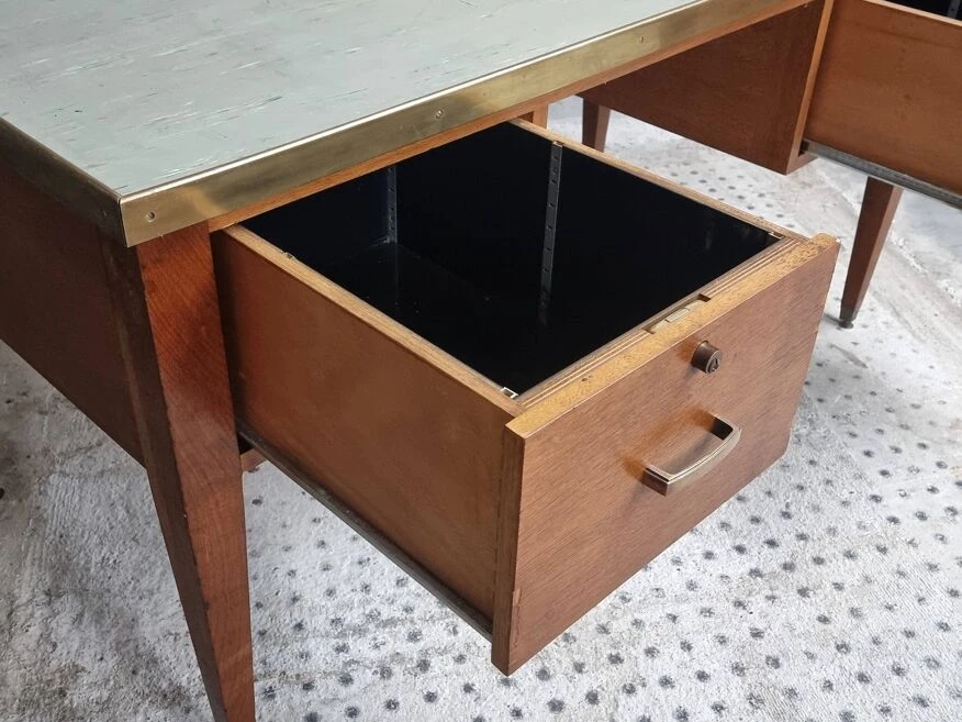 This mid century desk is expertly finished on all sides, therefore it can also be used separately in the room.