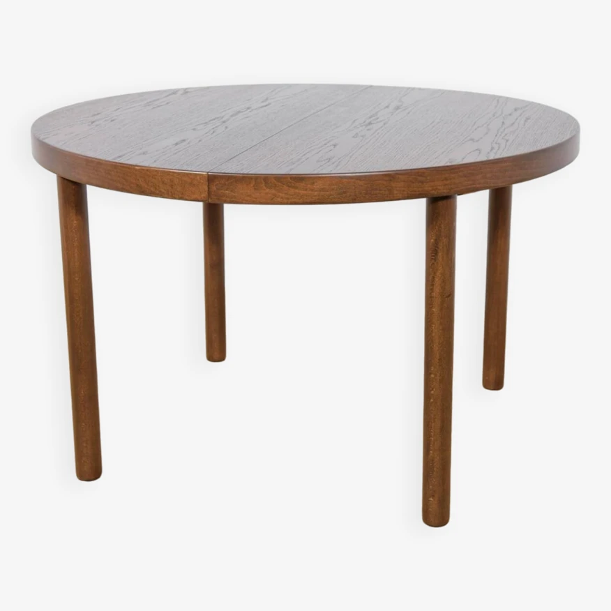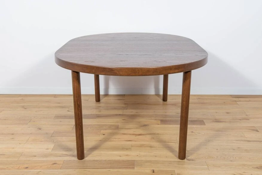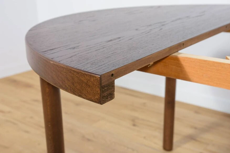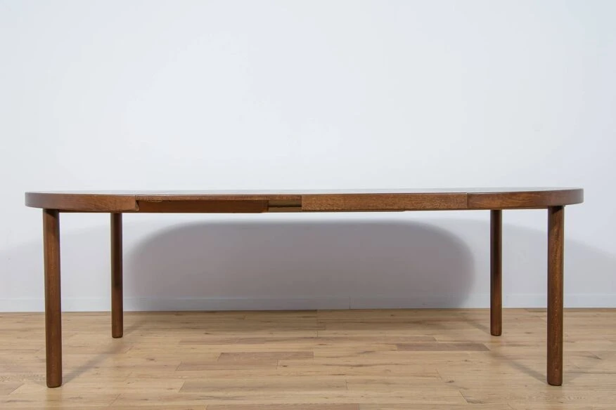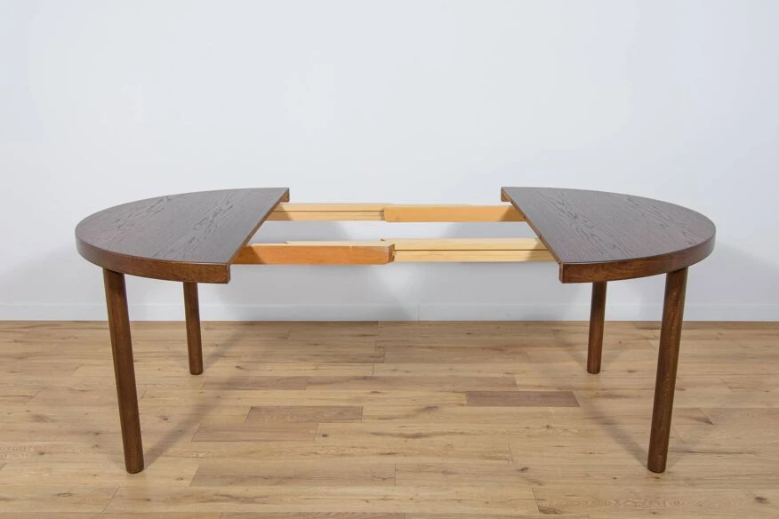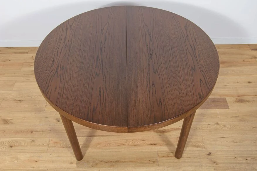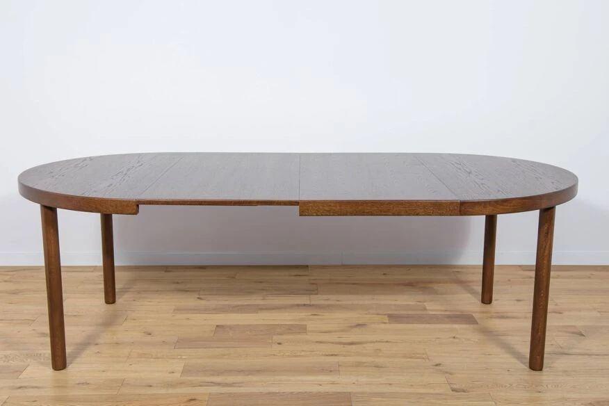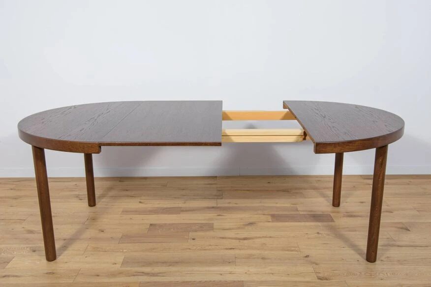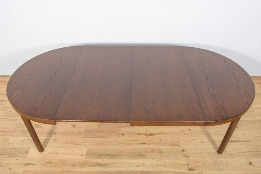 This dining table designed kai kristiansen and manufactured by feldballes møbelfabrik in denmark in the 1960s.this dining table is made out of oak wood.