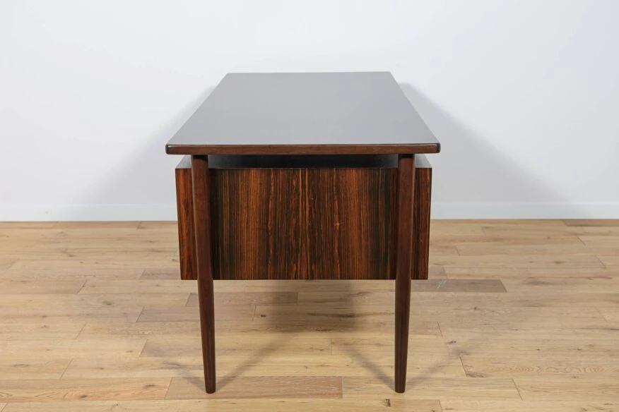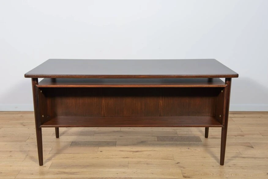 The desk has been completely renovated, it has been cleaned of the old coating, painted with a rosewood stain, and finished with a strong semi-matt varnish.