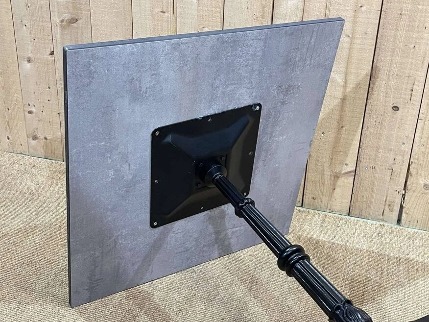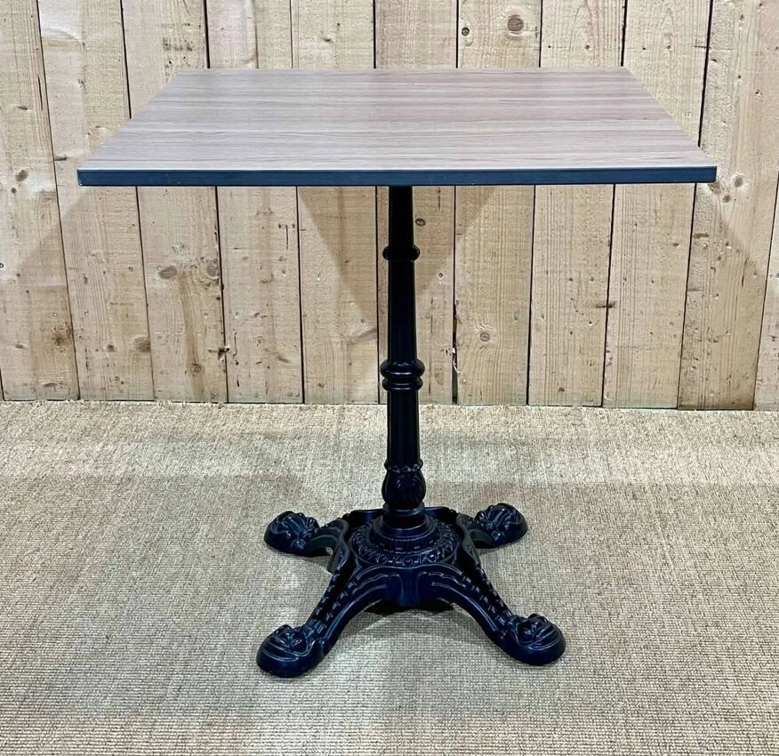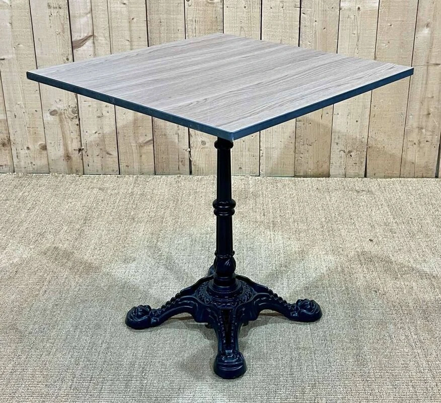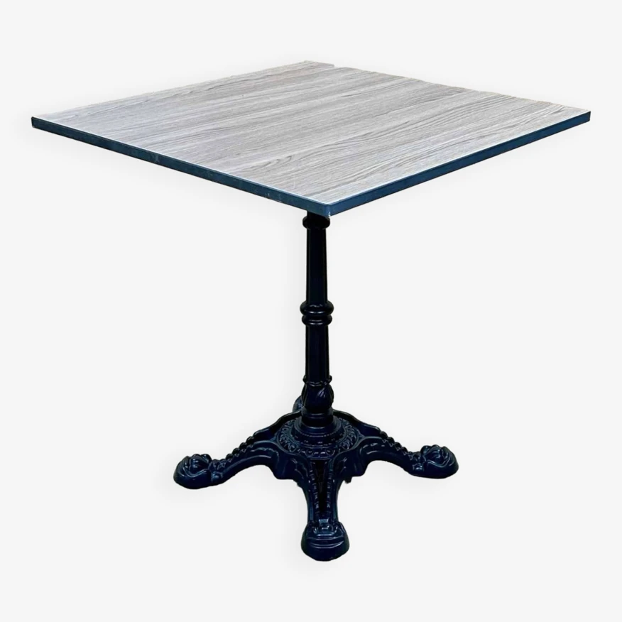 Modern bistro table, cast iron base and laminate top – l=70cm, w=70cm, h=74.5cm.