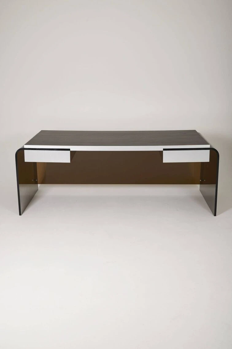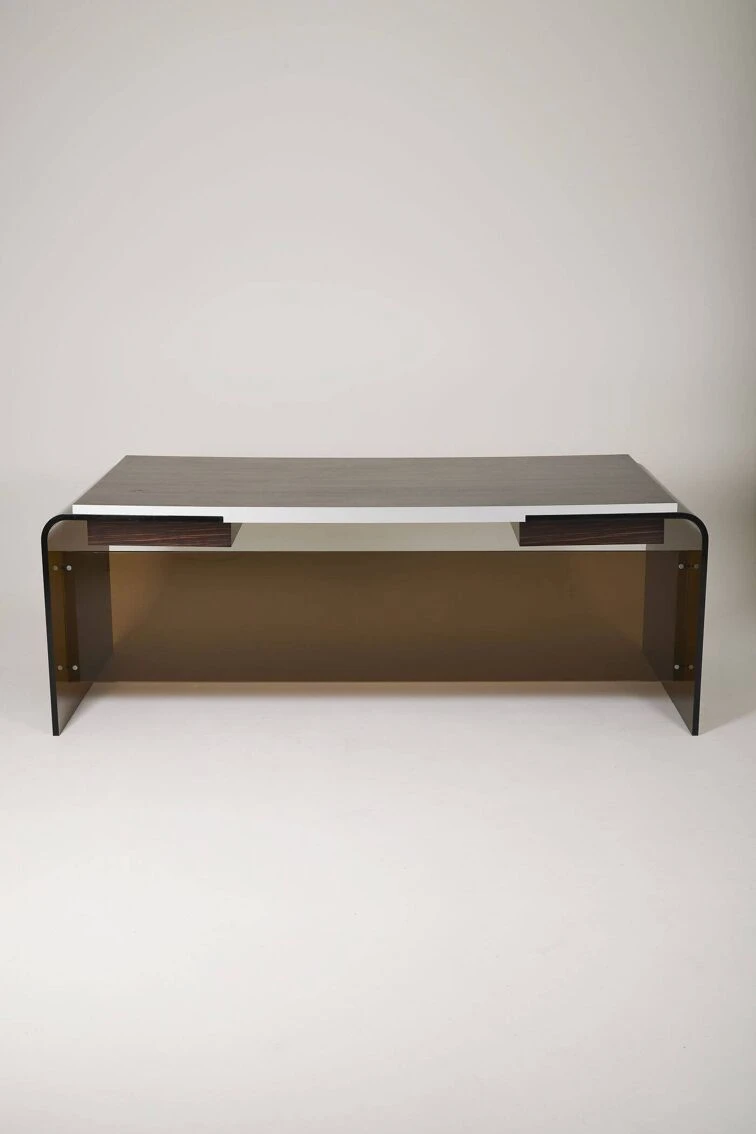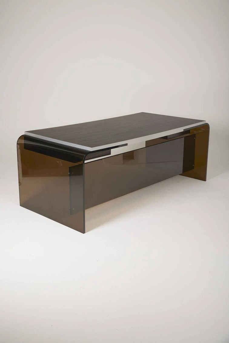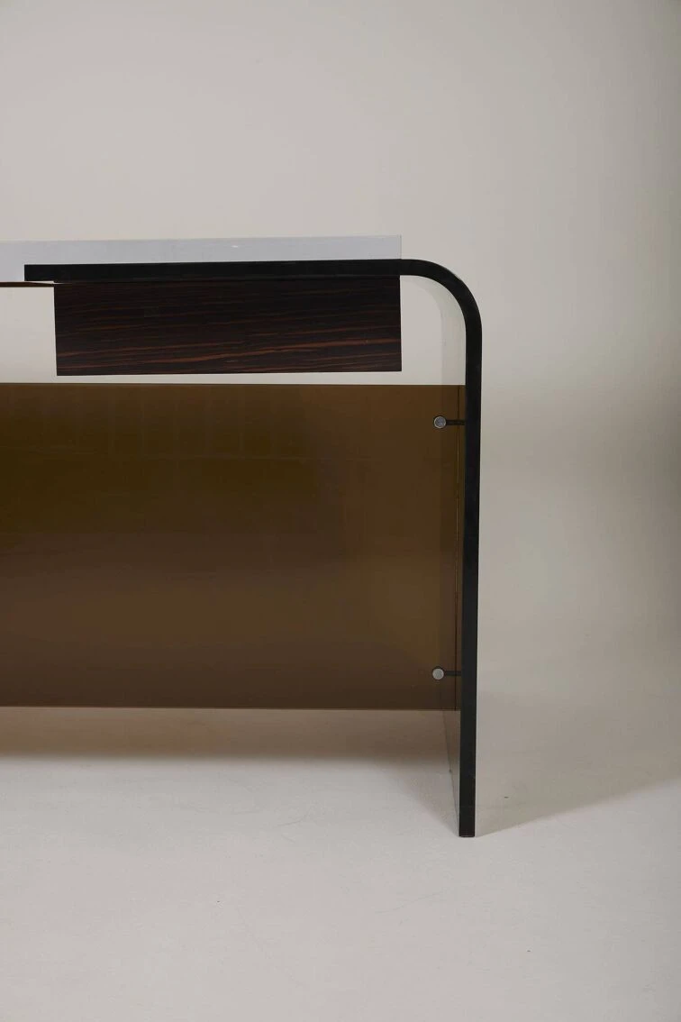 Large conference desk in altuglas and ebony veneer from the 1970s.