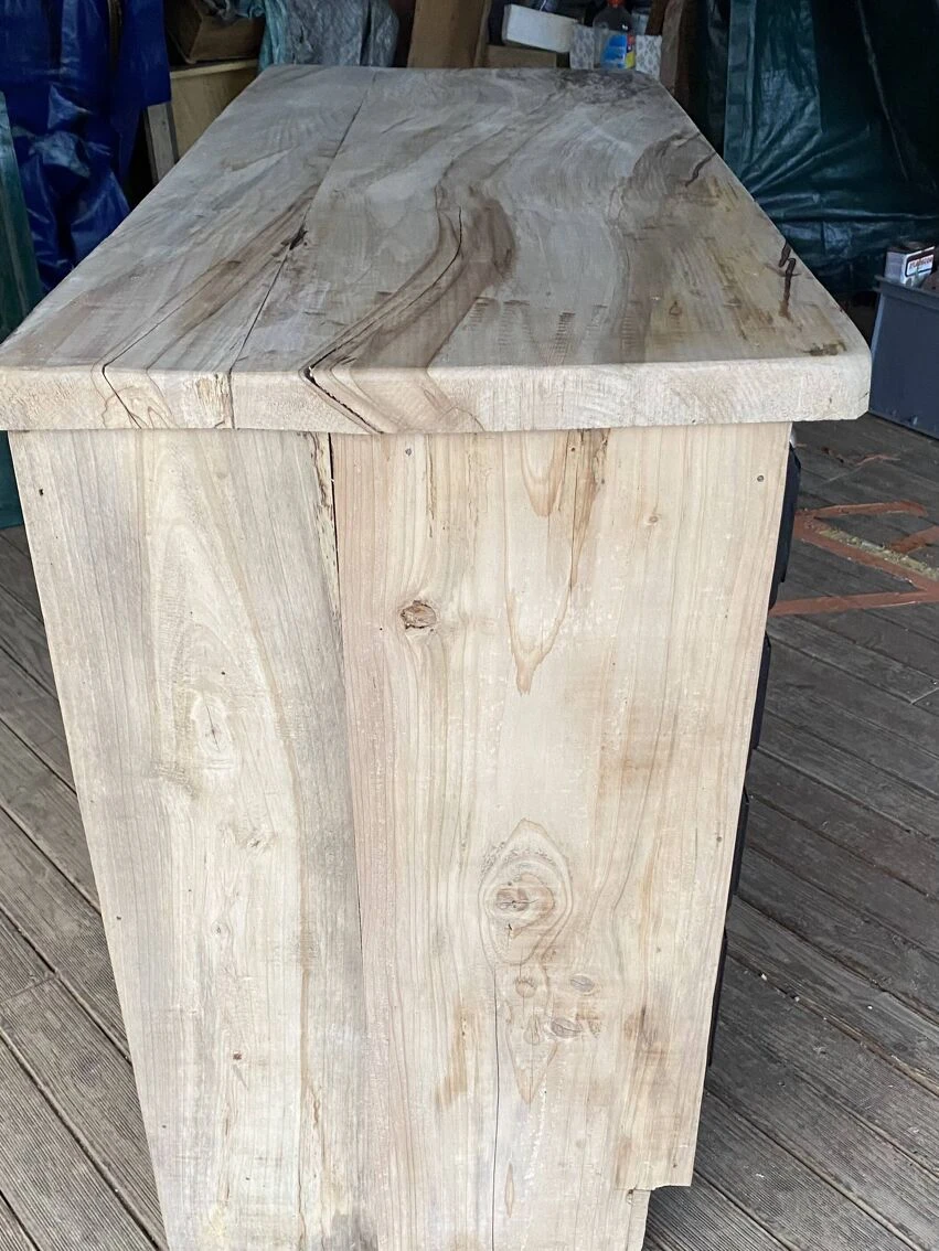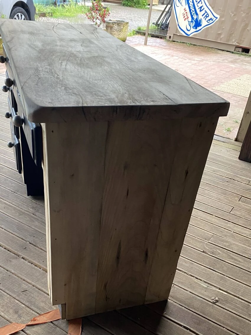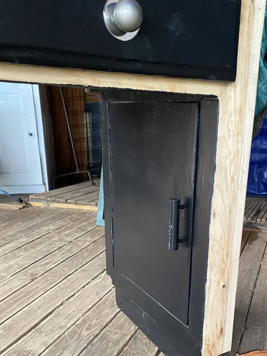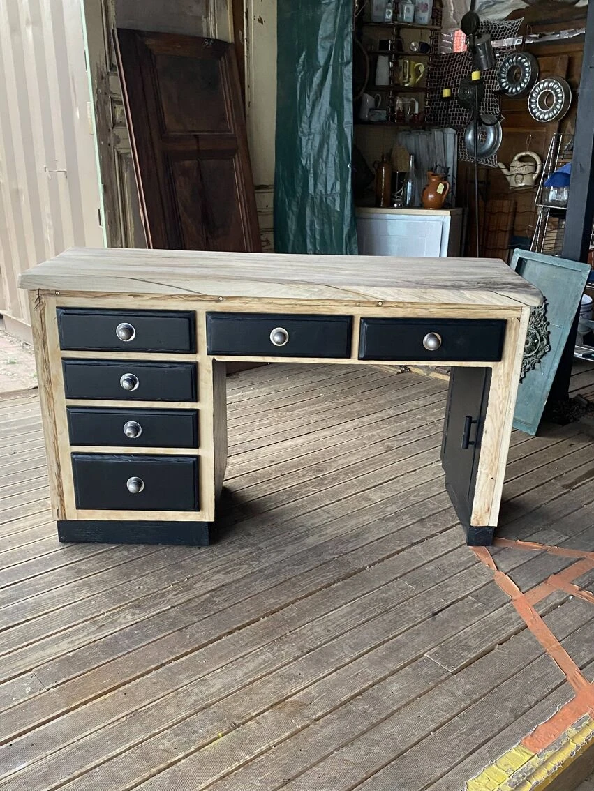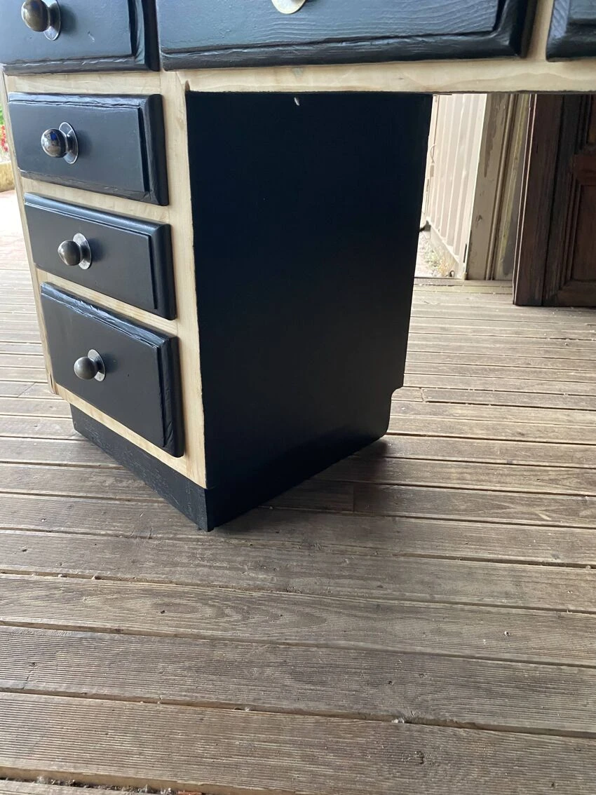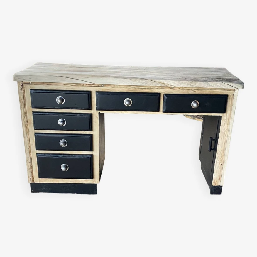 It has been completely cleaned, followed by sanding, treated with a matt colorless varnish and under the base repainted as well as the front of the satin black drawers.