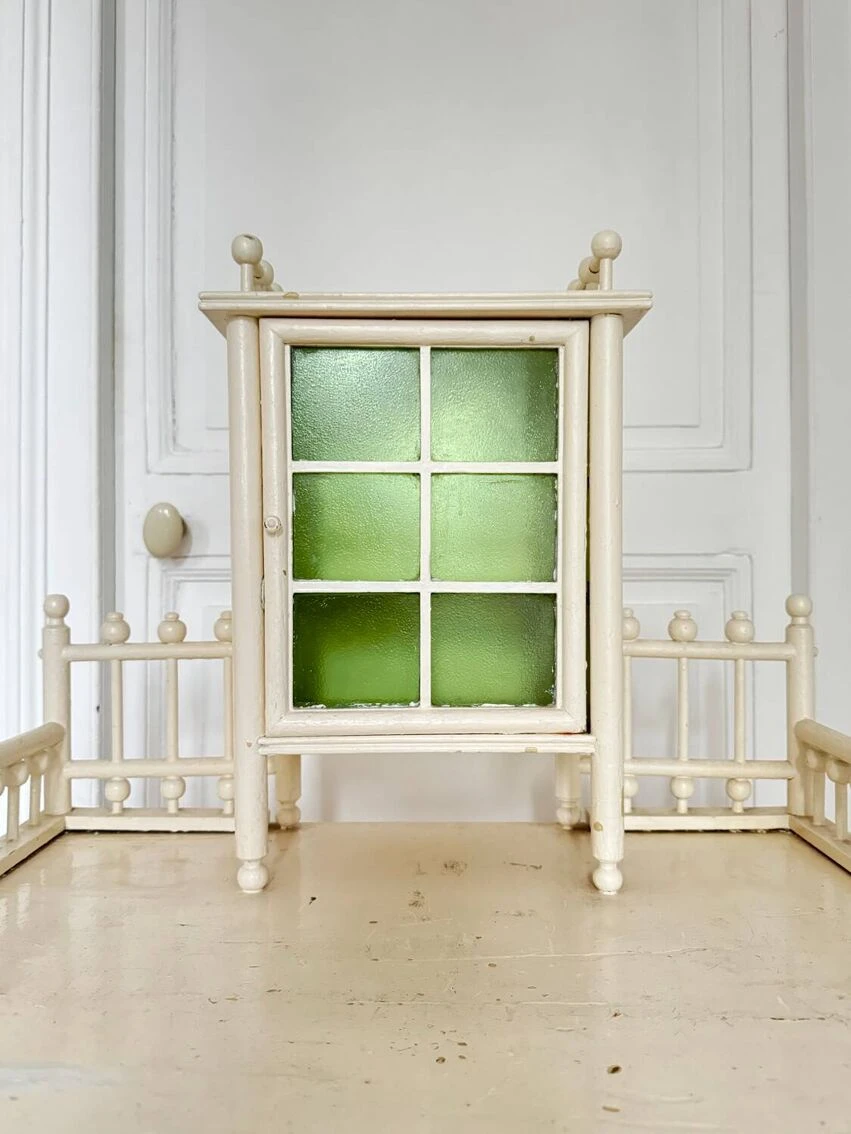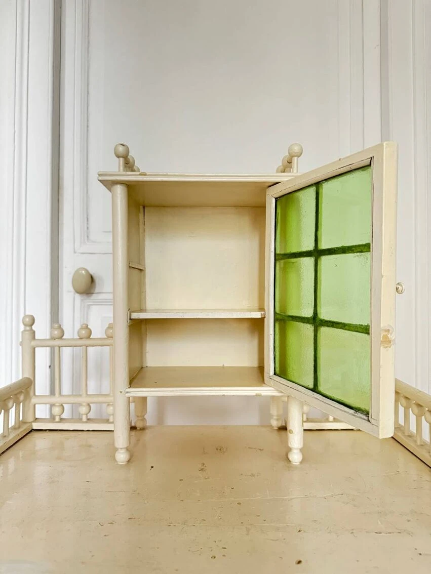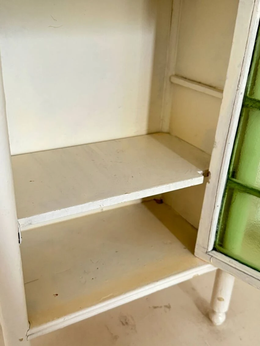 The glass door (original granite glass in light green color intact) opens onto a fixed shelf.