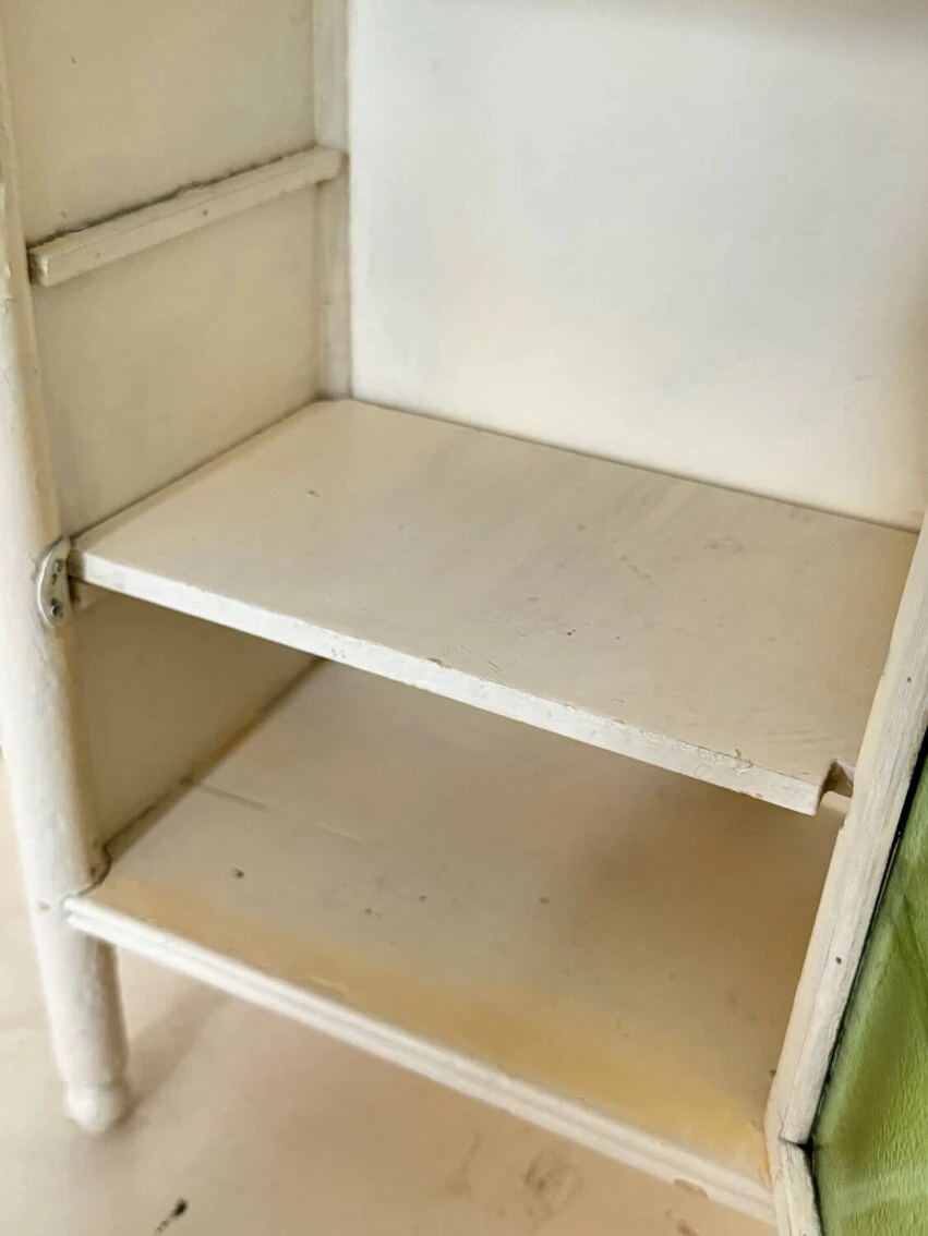 Made of wood, it has a drawer with its original openwork metal handle.