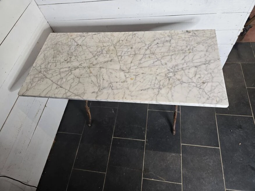 Dimensions 119cm long, 56cm wide, 72.5cm high, table thickness 2.5cm.