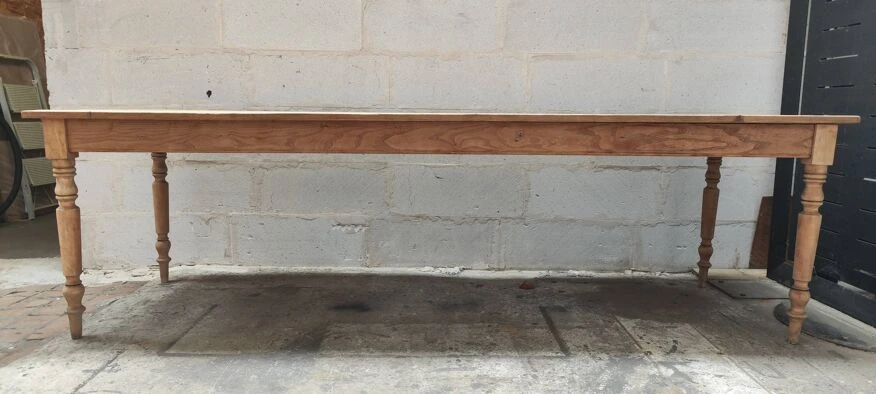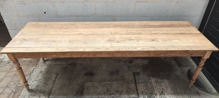Old large raw wood farm table this large old farm table evokes a rustic and timeless charm.