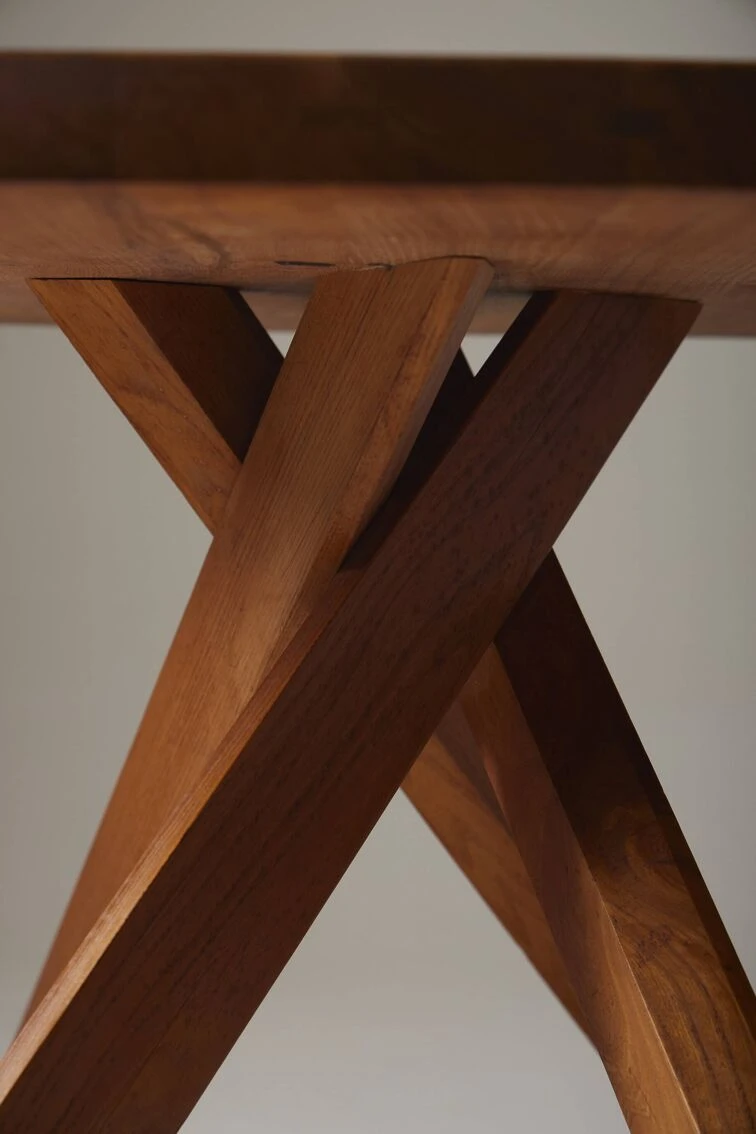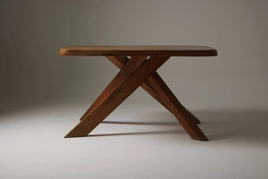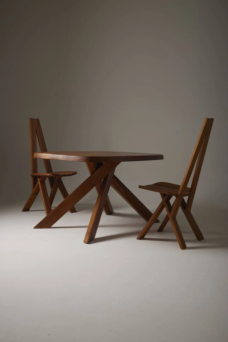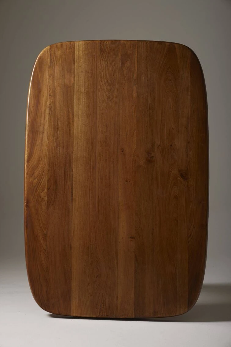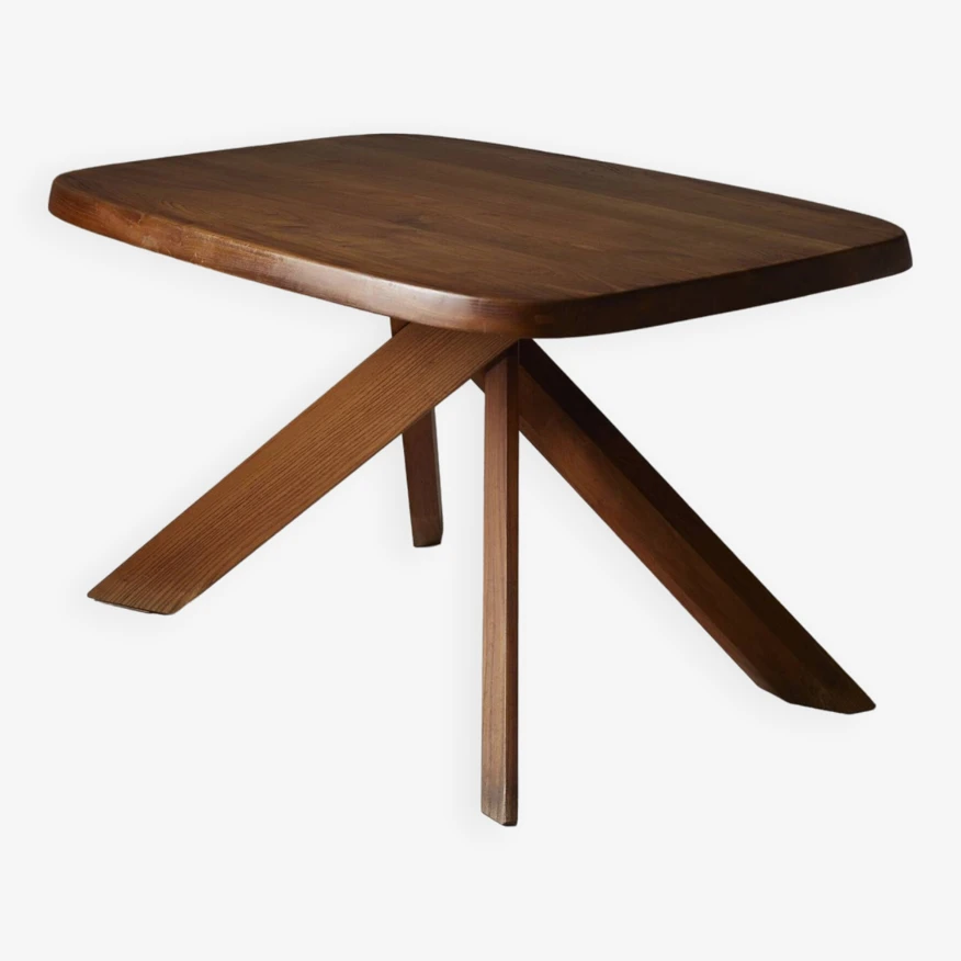 Dining table model “T35b” ‘ABAN’ in solid elm by French designer Pierre Chapo (1927-1987) in the 1960s. The table is composed of a rectangular top and a base composed of 5 intersecting branches, typical in the style of Pierre Chapo. Very good condition, beautiful piece prized by collectors. DV559