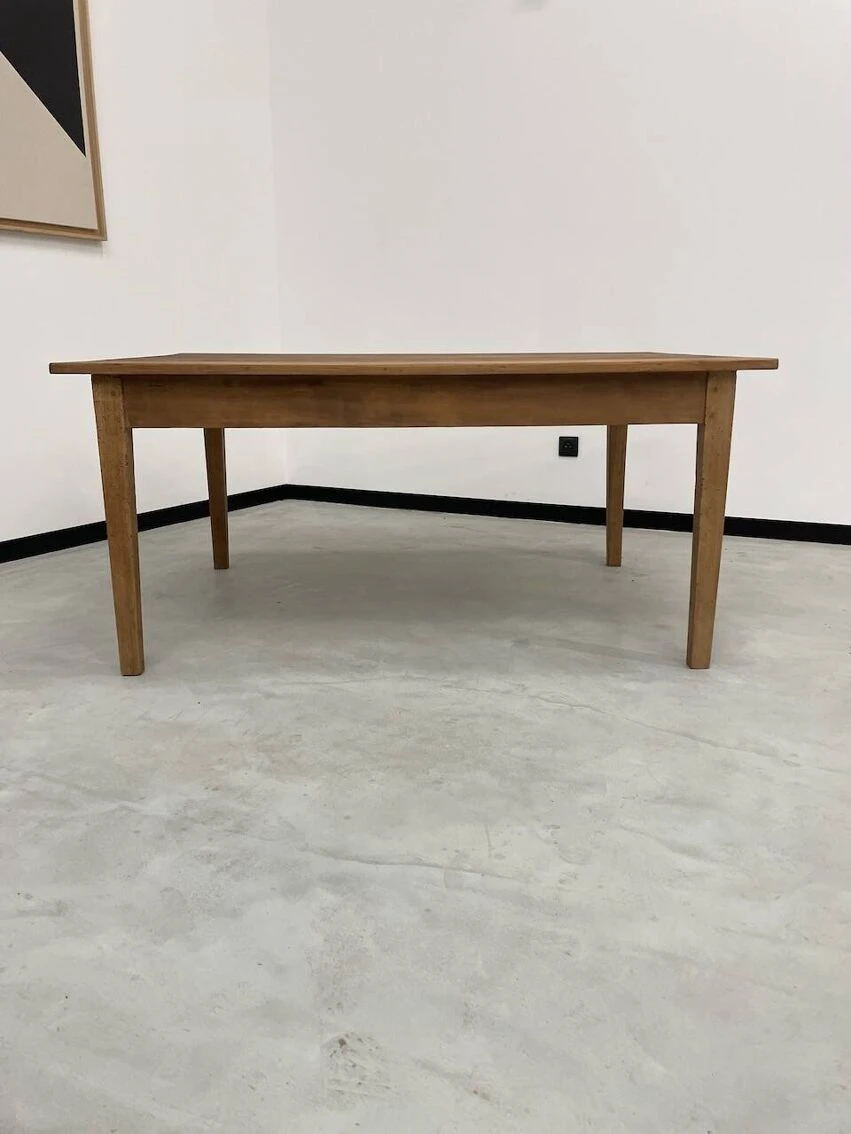 Completely restored, it was sanded, lightly stained to bring out the veining and protected with a matte varnish. – dimensions – l 160 X d 110 X h 74 cm height under headband – 60 cm.