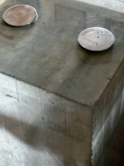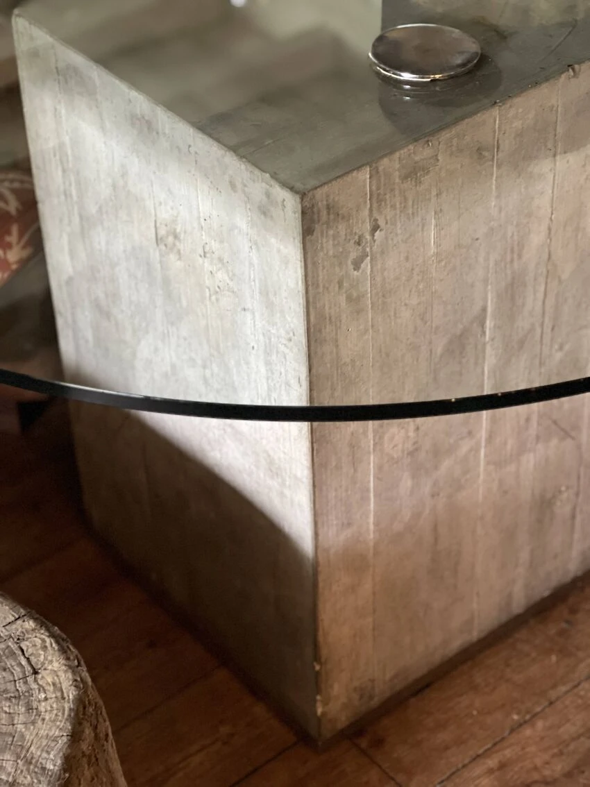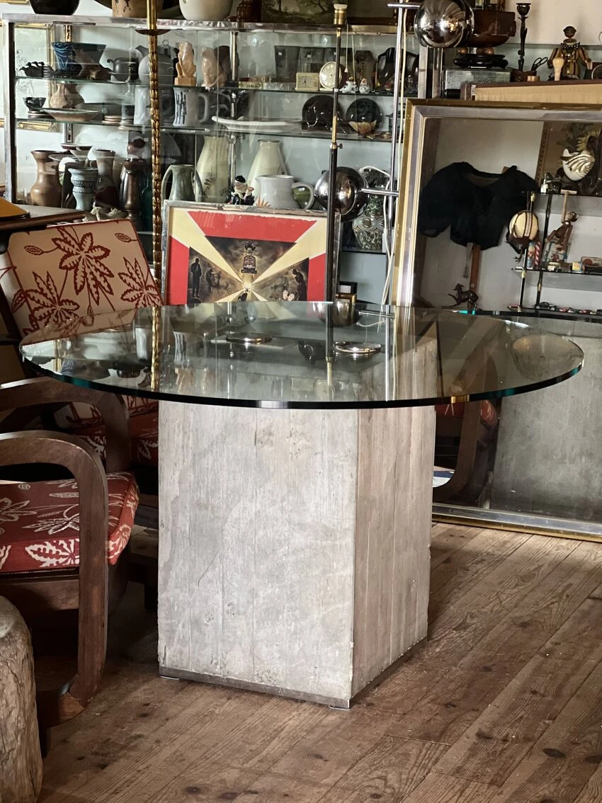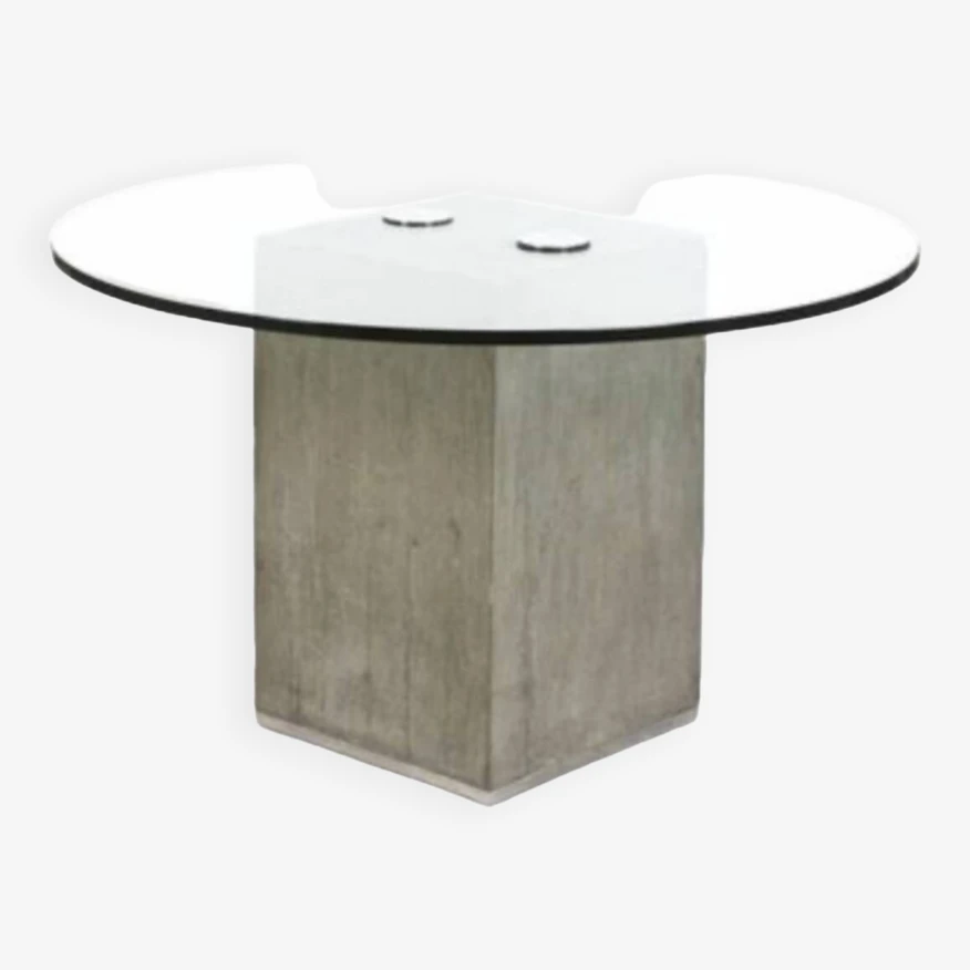 Round table by sergio & giorgio saporiti beautiful 70s glass table by sergio & giorgio saporiti with hollow cement base (but very heavy) 120cm in diameter and 75cm in height.