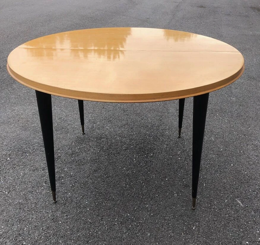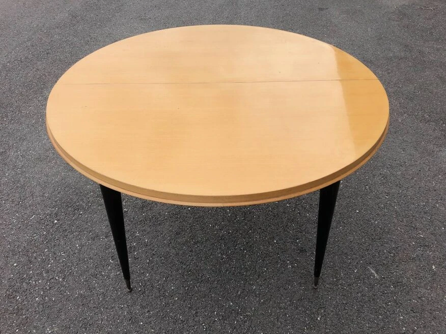 Table in original condition from the 1950s, black lacquered legs and ash top.