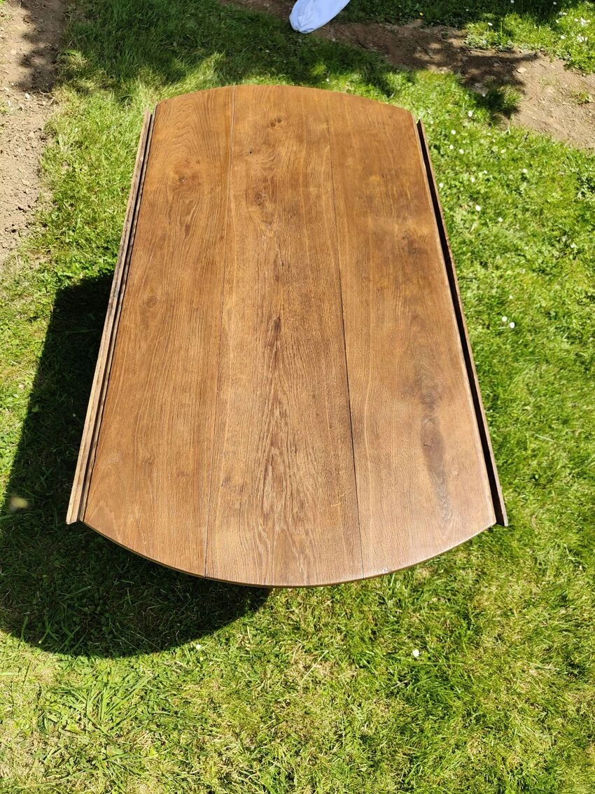 The round folding table in solid oak: a treasure of rare beauty, combining authenticity and functionality.