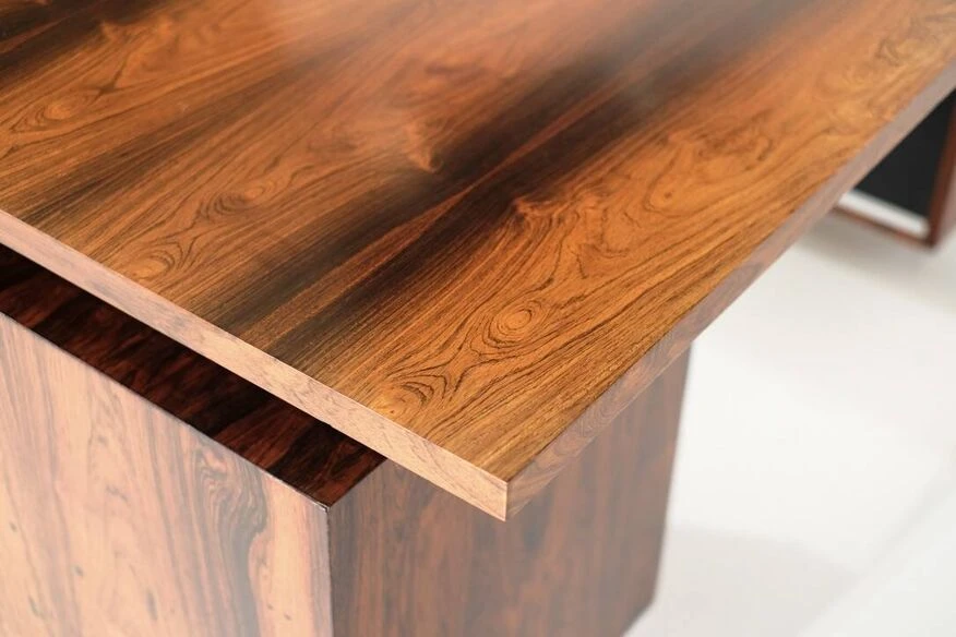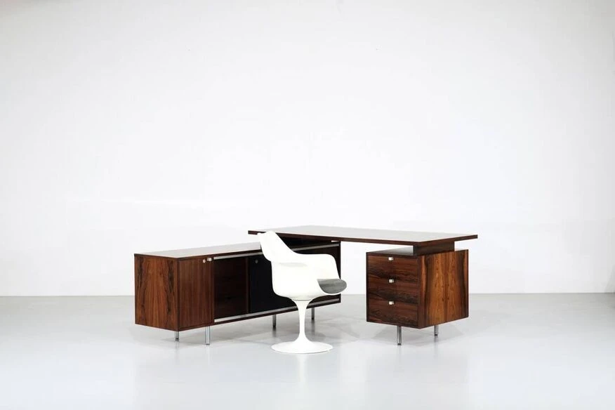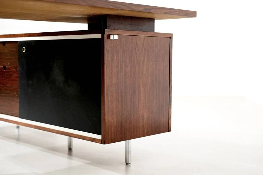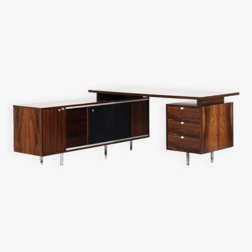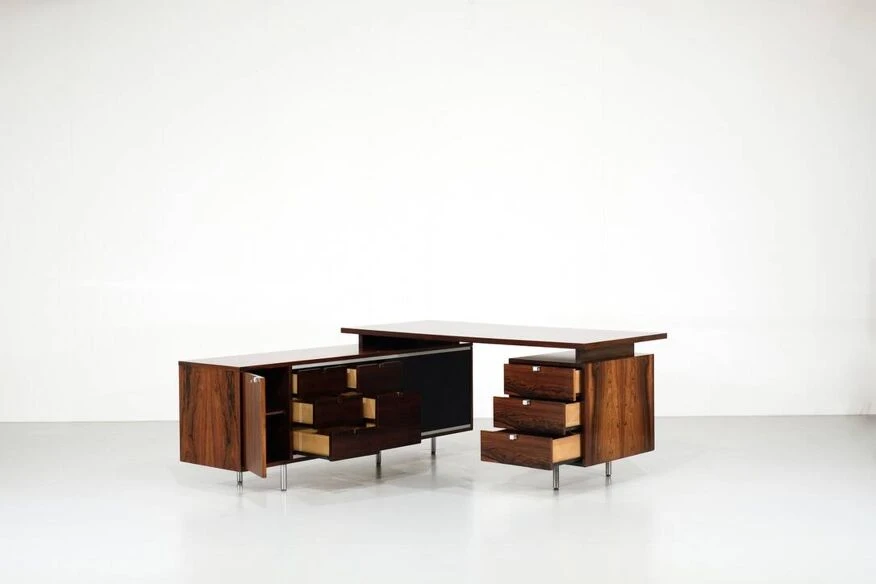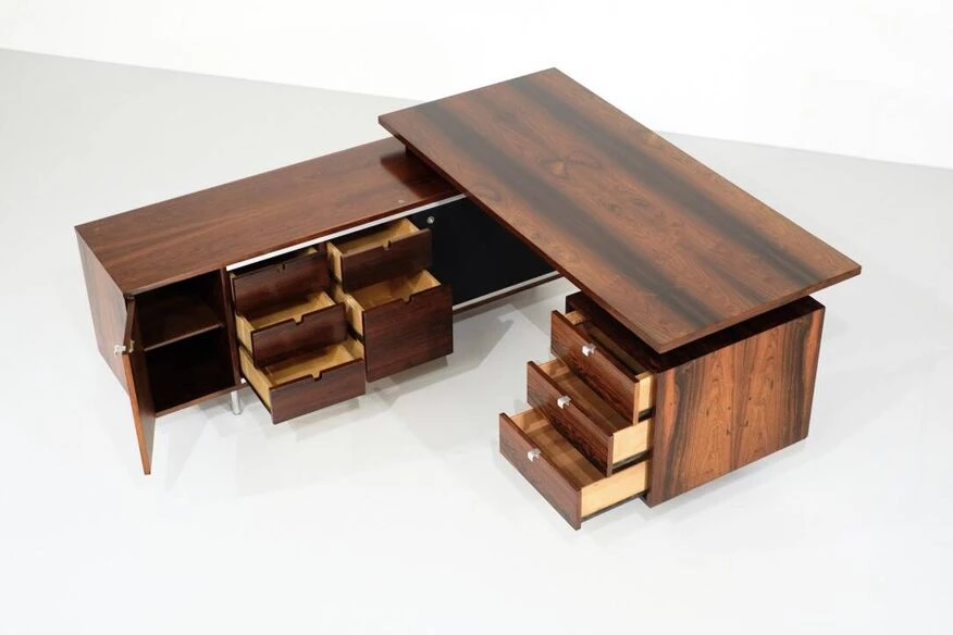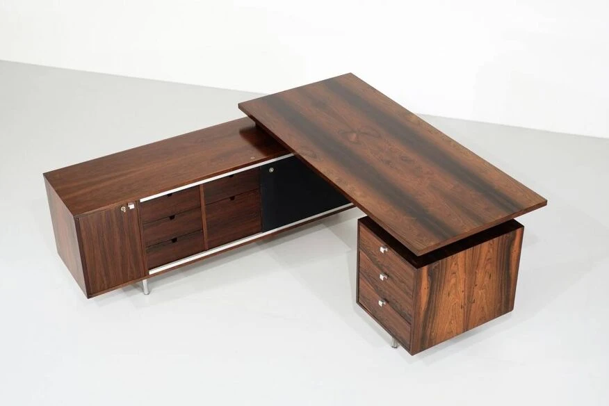 Wooden desk, executive office group (eog) model “9000” series with a multitude of storage compartments.