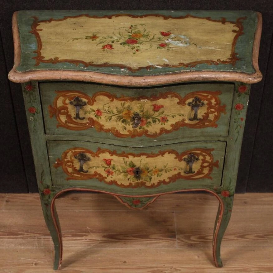 Commode equipped with two front drawers of good capacity and wooden top in character also lacquered and painted (see picture).