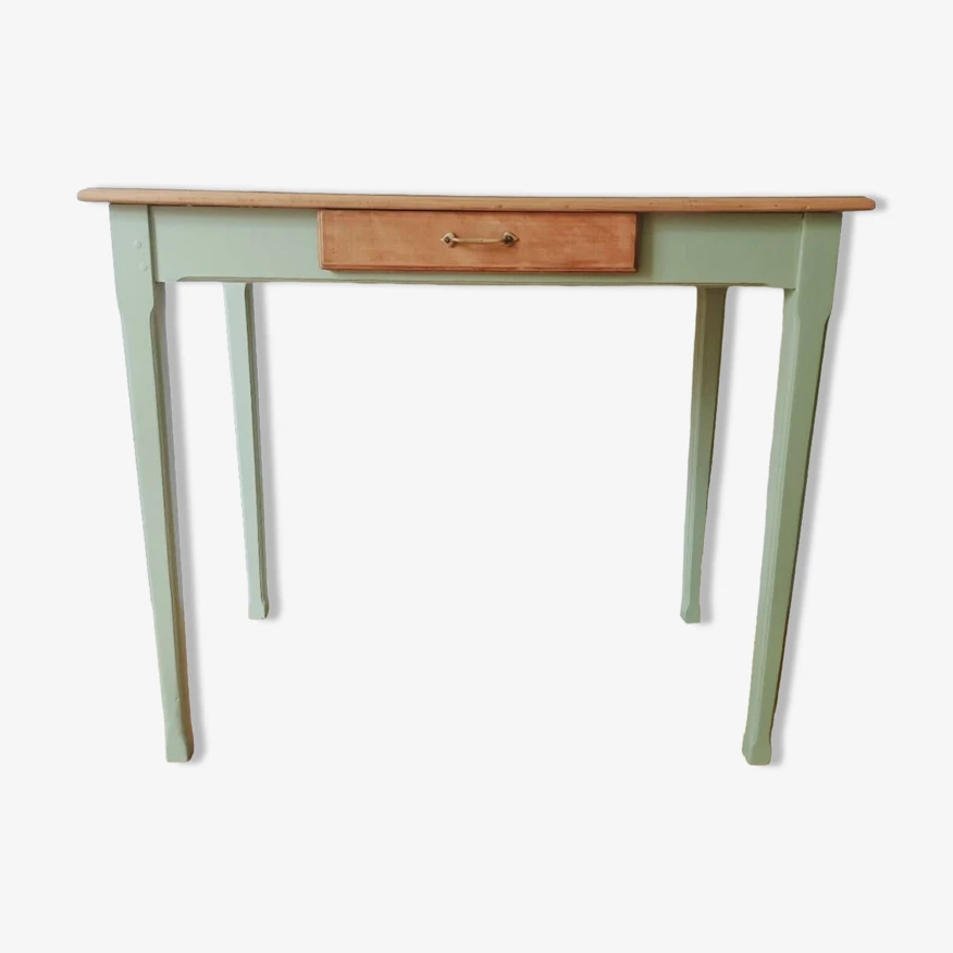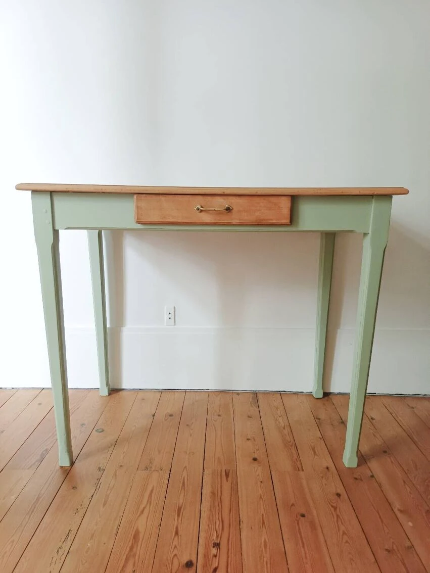 The top and drawer sanded and left raw, a colorless matte varnish to protect them.