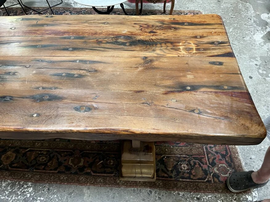 Large and beautiful monastery table in solid oak, the top is 9 cm thick, the dimensions are: length 290 width 87 height 76 it can be dismantled.