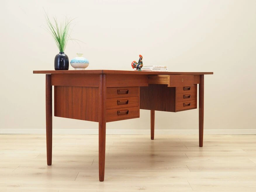 The legs are made of solid wood, perfectly integrated into the construction of the desk.