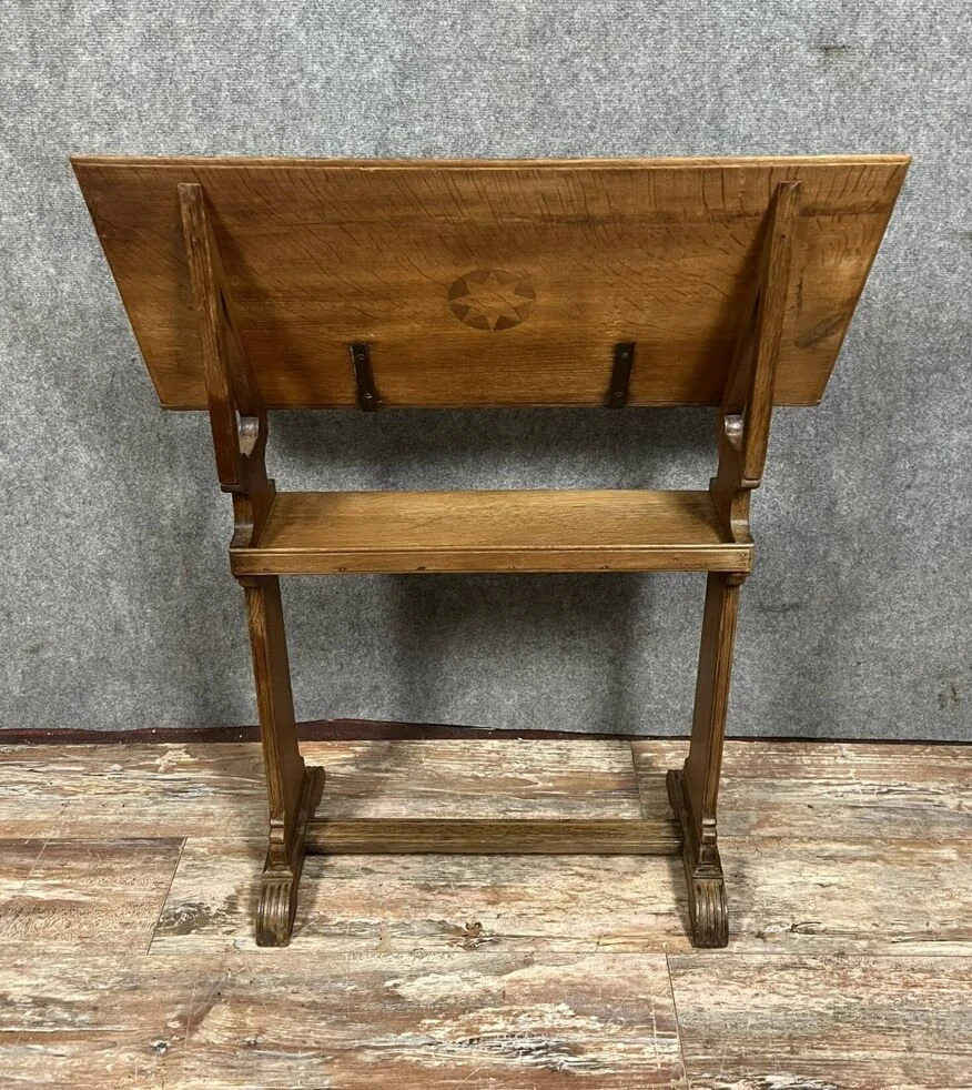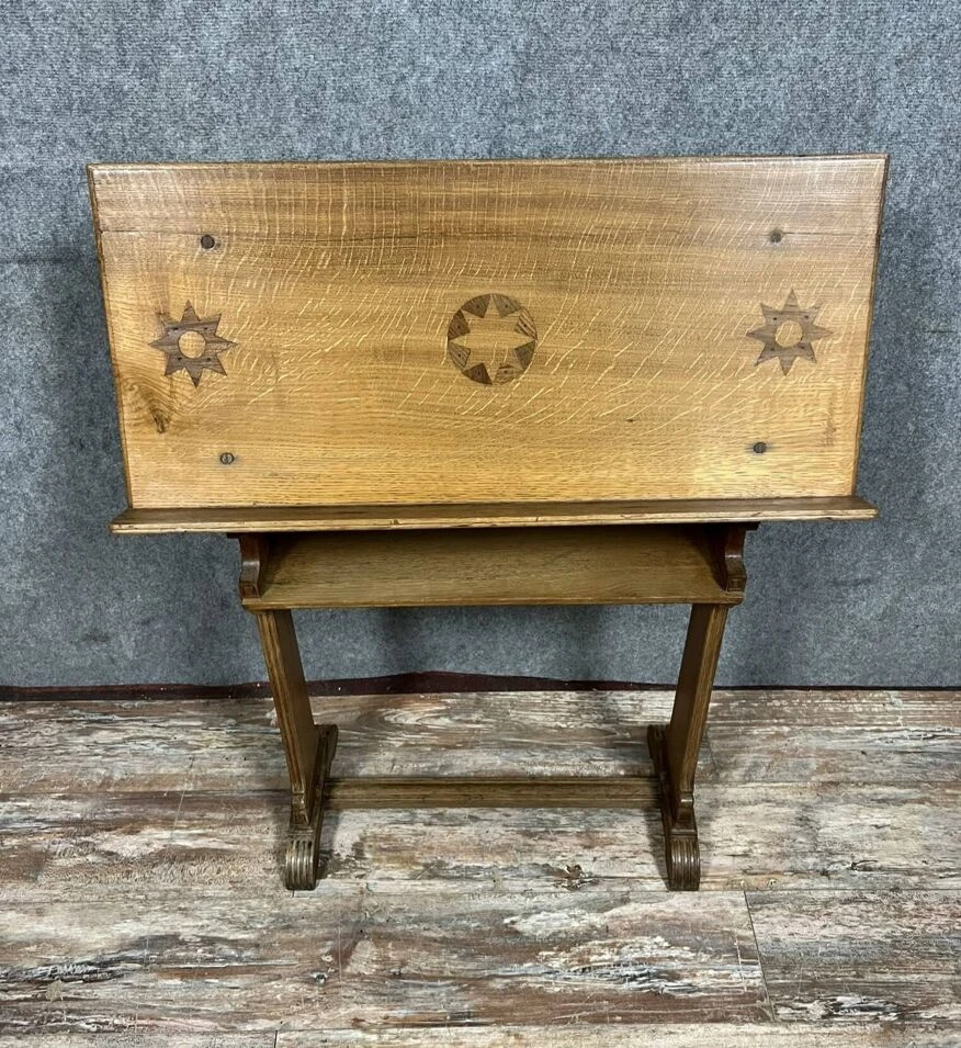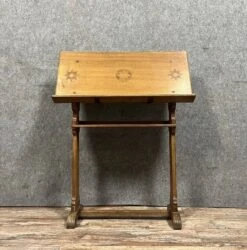 Very rare table forming a lectern or lectern napoleon III period in marquetry around 1850 inclined plane legs with spacer assembly and a small tray dimensions: h103x82x30.